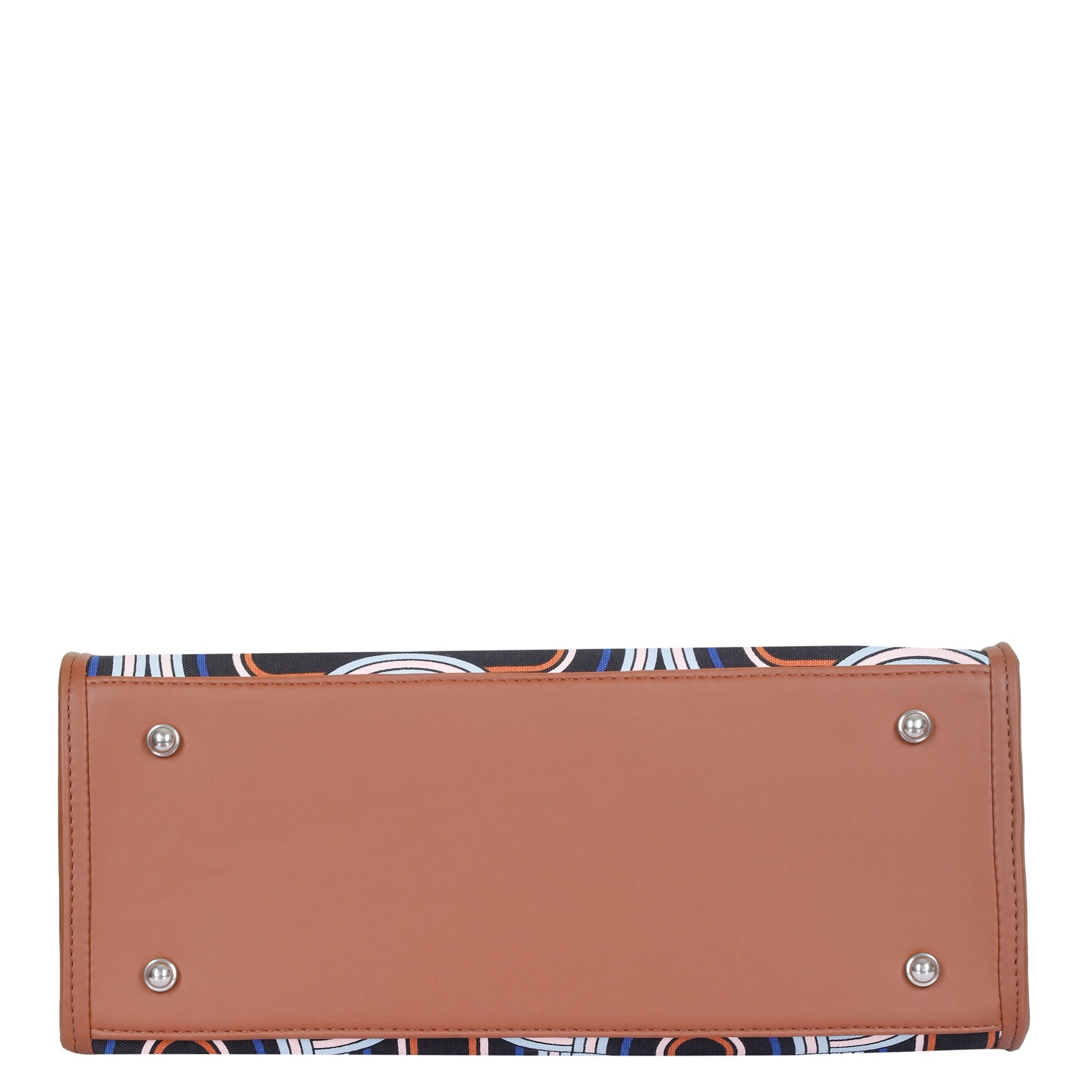 Premium Materials & Durable Design: This Top Handle Laptop Bag is crafted from scratch-resistant vegan leather and durable printed fabric with a nylon lining. Features smooth top zipper for easy opening and metal feet at the base to protect against damage, dirt, and wear.