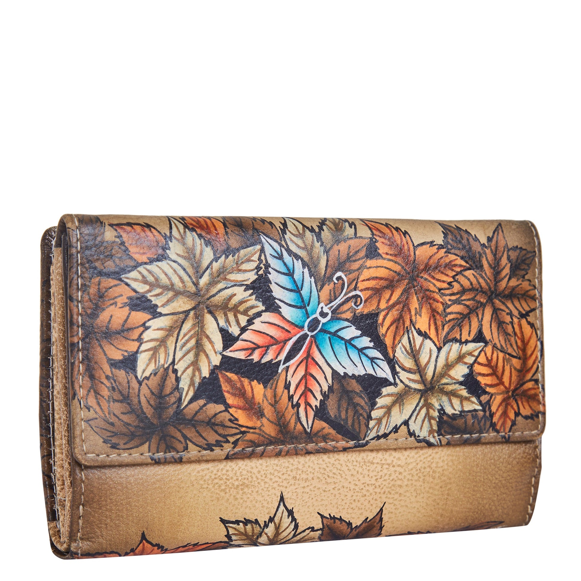 Artisan Hand-Painted Leaf Genuine Leather Bifold Wallet