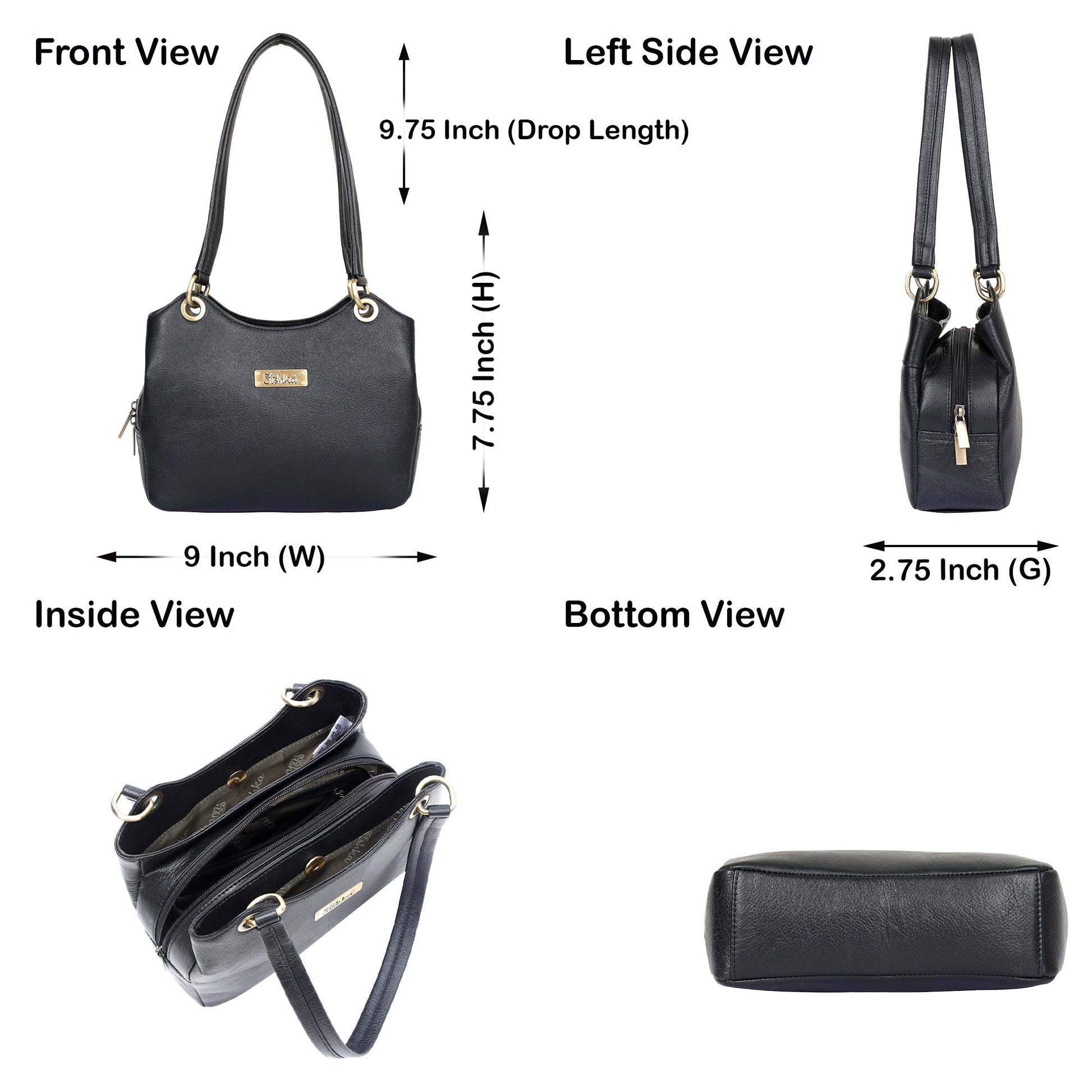 Black Genuine Leather Shoulder Handbag – Women’s Hobo Tote Purse