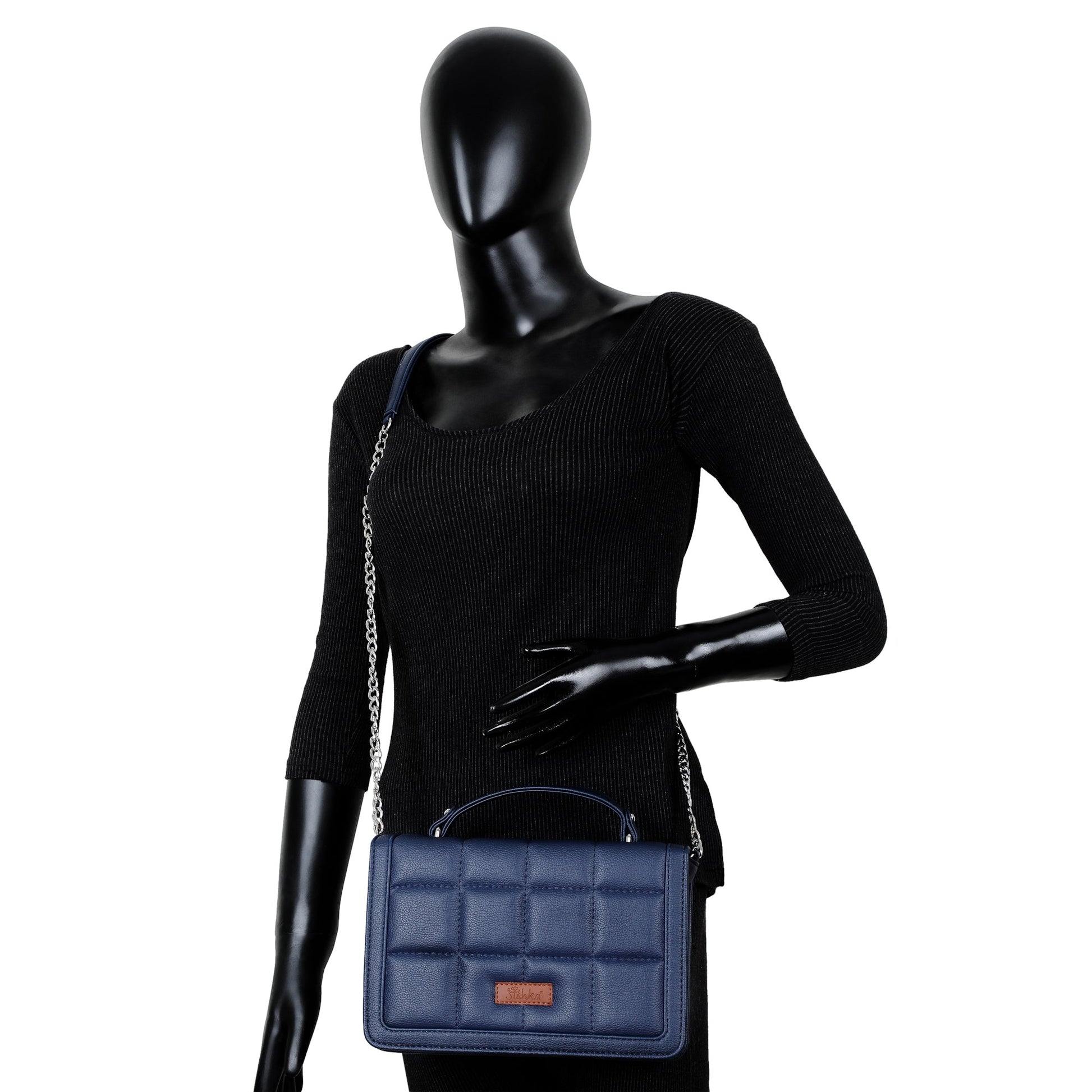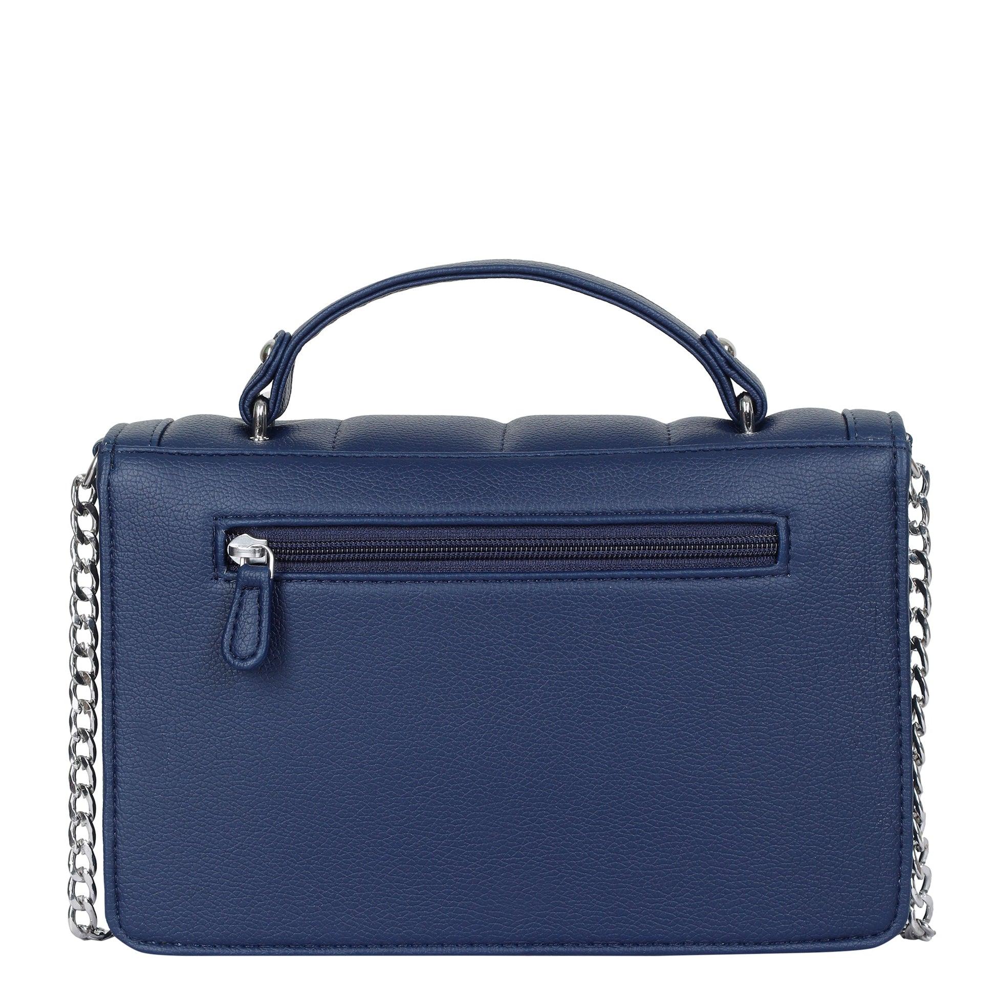 Blue Faux Leather Crossbody Sling Bag – Women’s Chain Strap Shoulder Handbag