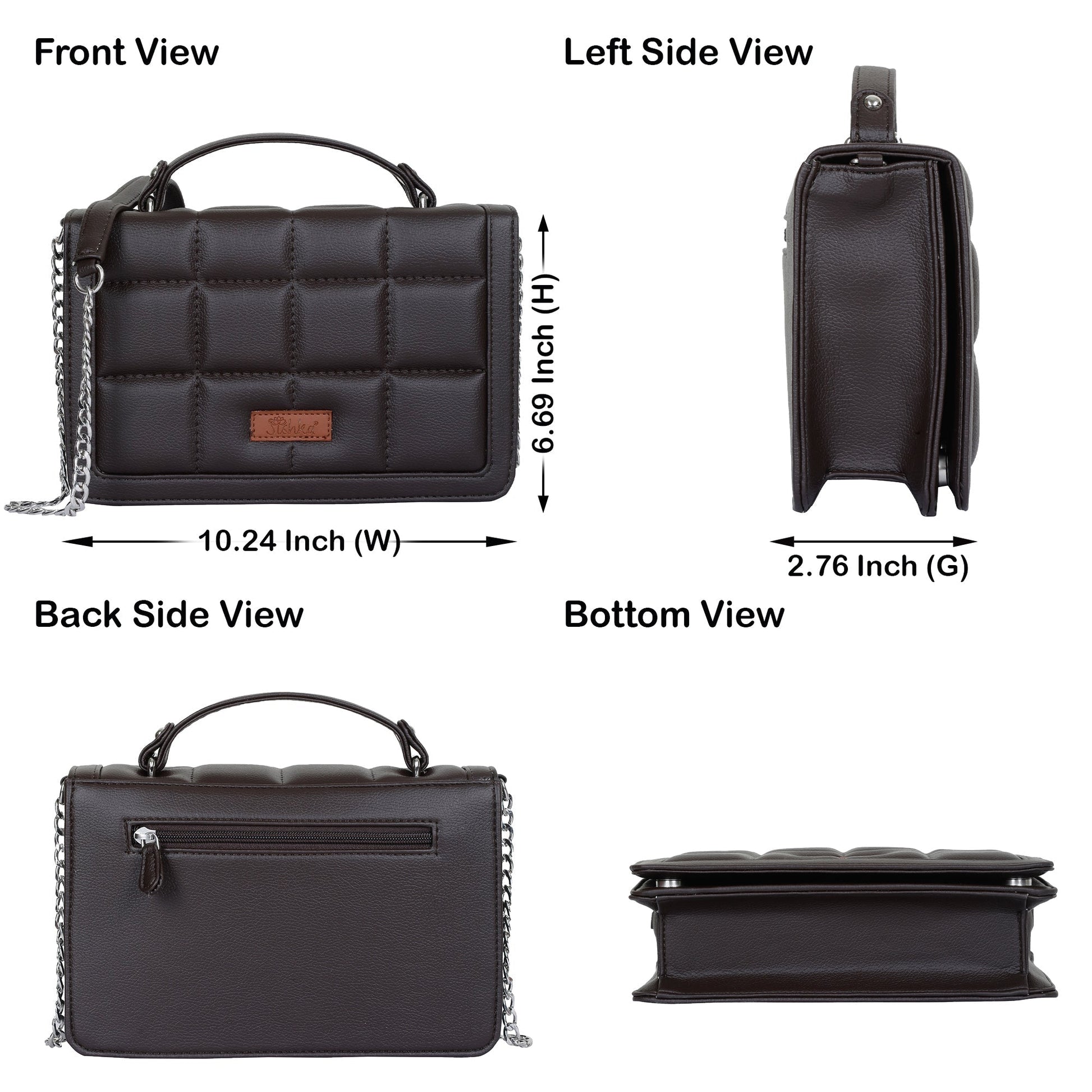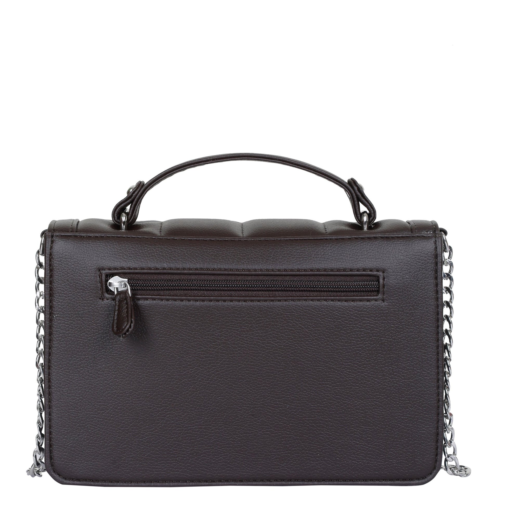 Brown Faux Leather Crossbody Sling Bag – Women’s Chain Strap Shoulder Handbag