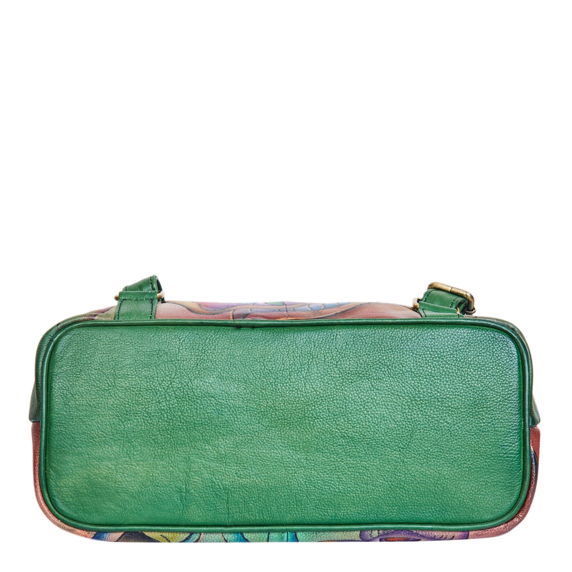Distinctive Design: Features a striking blend of colorful floral patterns and vibrant polka dots, all hand-painted on premium leather.
