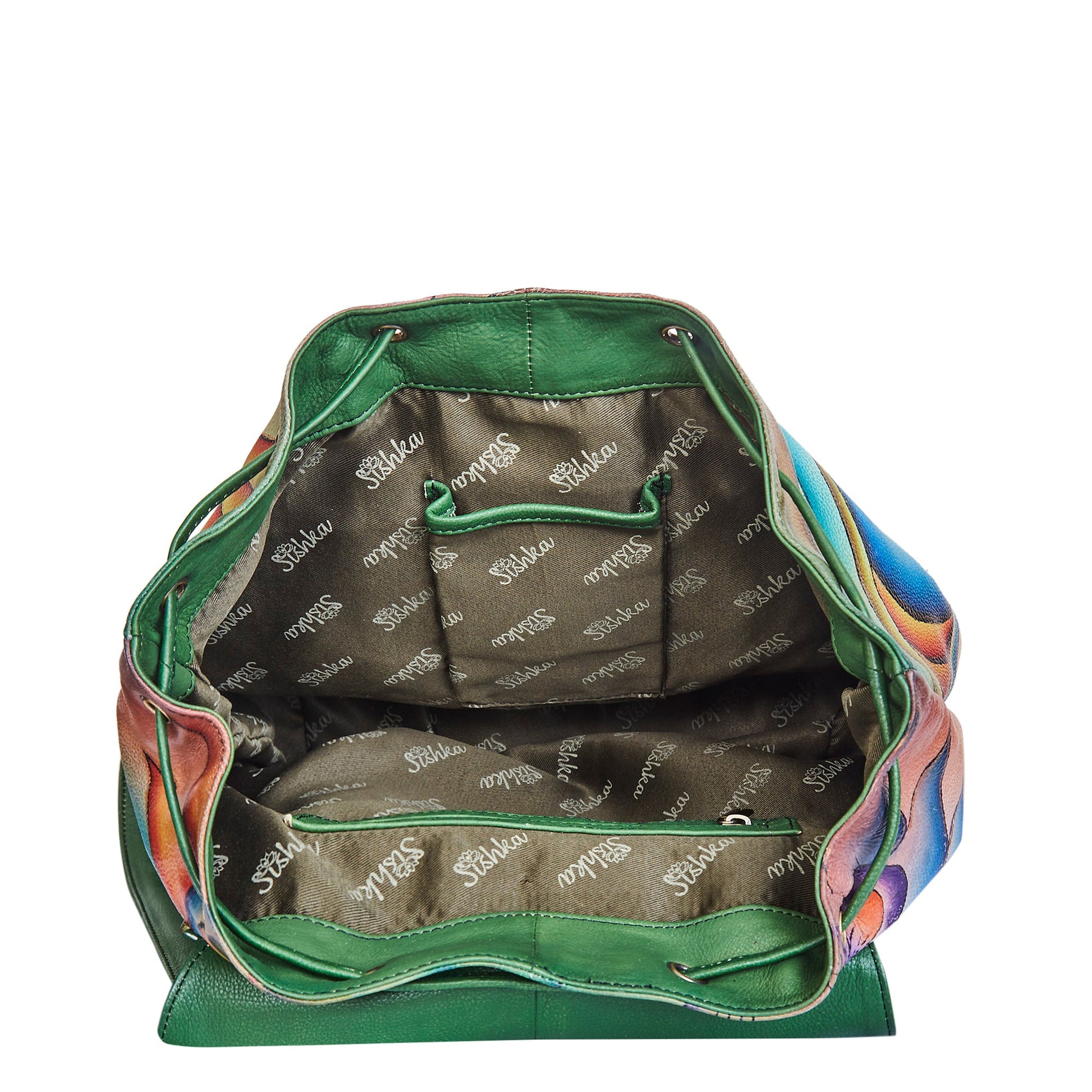 Colorful Floral Hand-Painted Backpack with Drawstring and Flap Closing