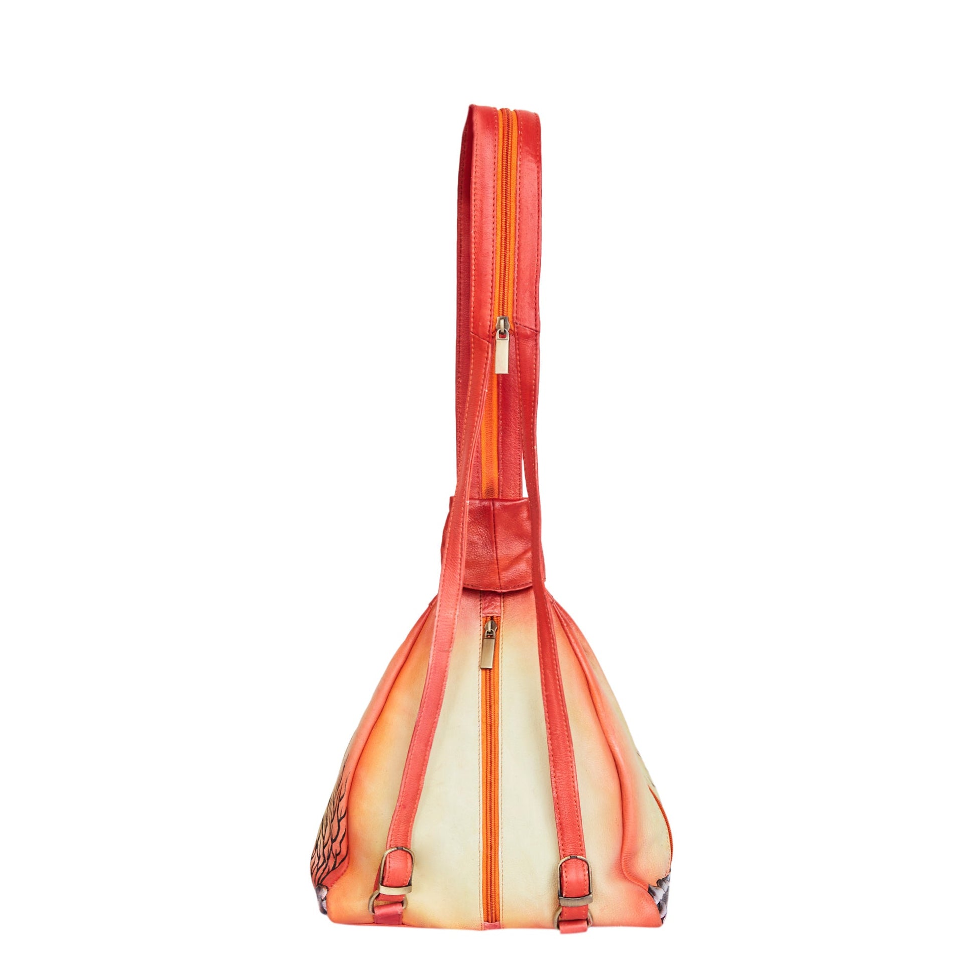 Artistic Theme: This convertible leather backpack showcases a beautiful hand-painted floral and forest theme, blending nature-inspired artwork with practical design.