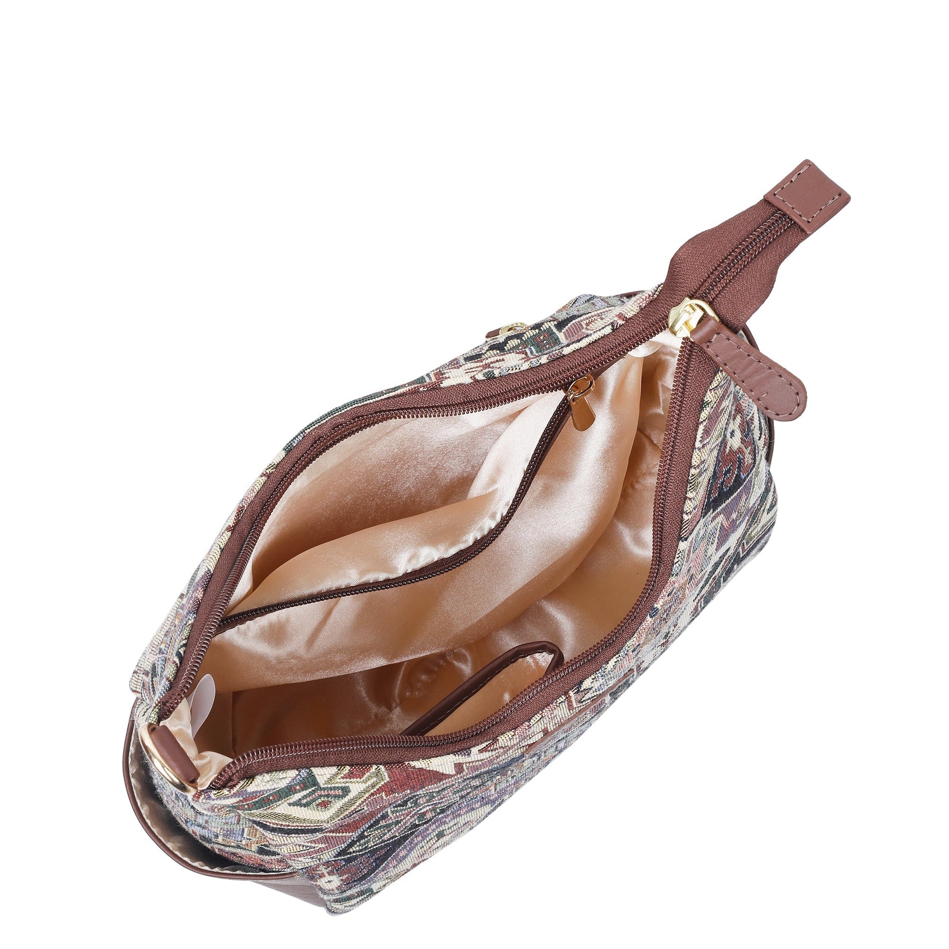 Women’s Hobo Bag in Geometric Tapestry Pattern with Leather Trim |Crossbody & Shoulder Purse for Office