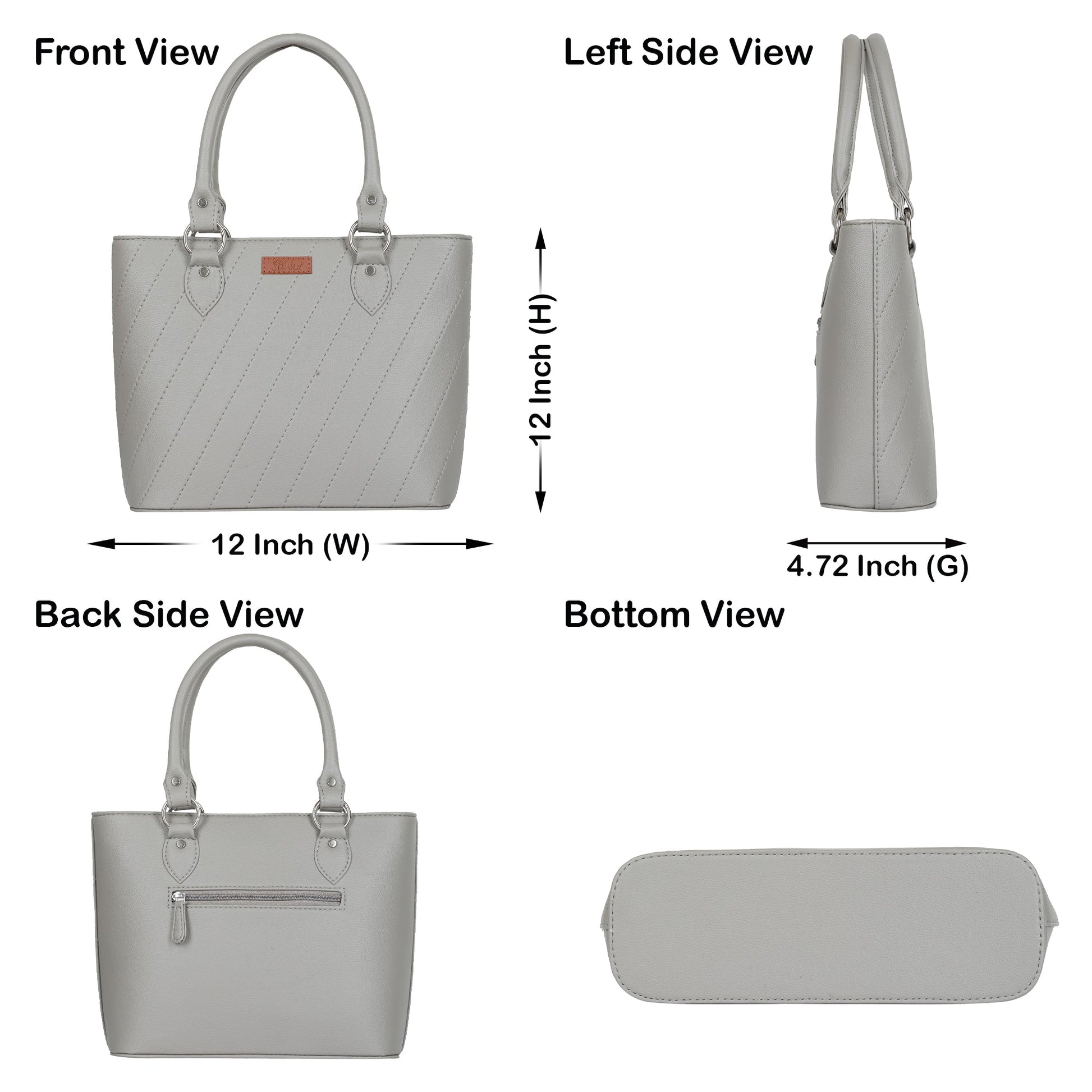 Grey Vegan Leather Tote Satchel – Women’s Top Handle Shoulder Bag