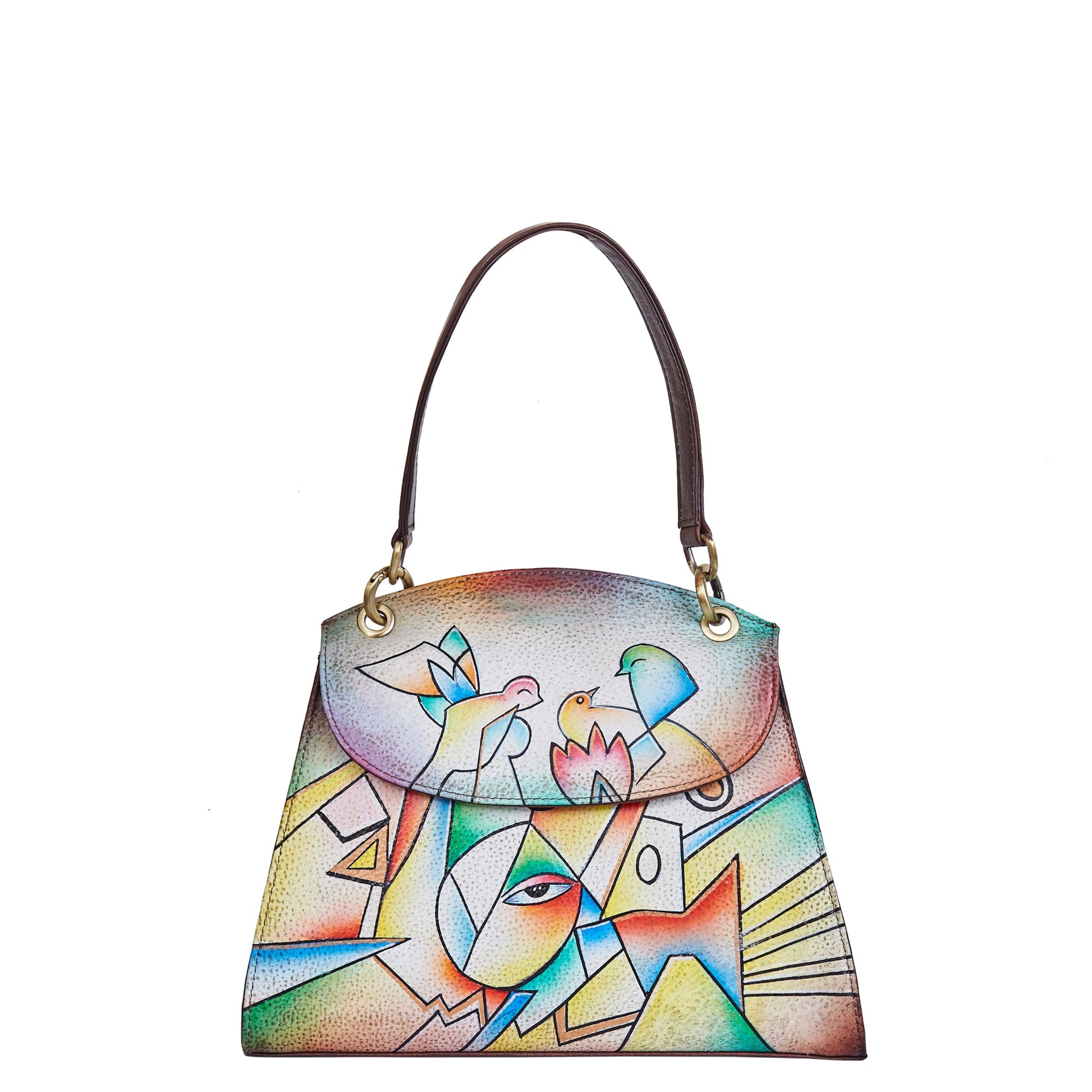 Hand-Painted Abstract leather Handbag – Multi-Color Artistic Shoulder Bag