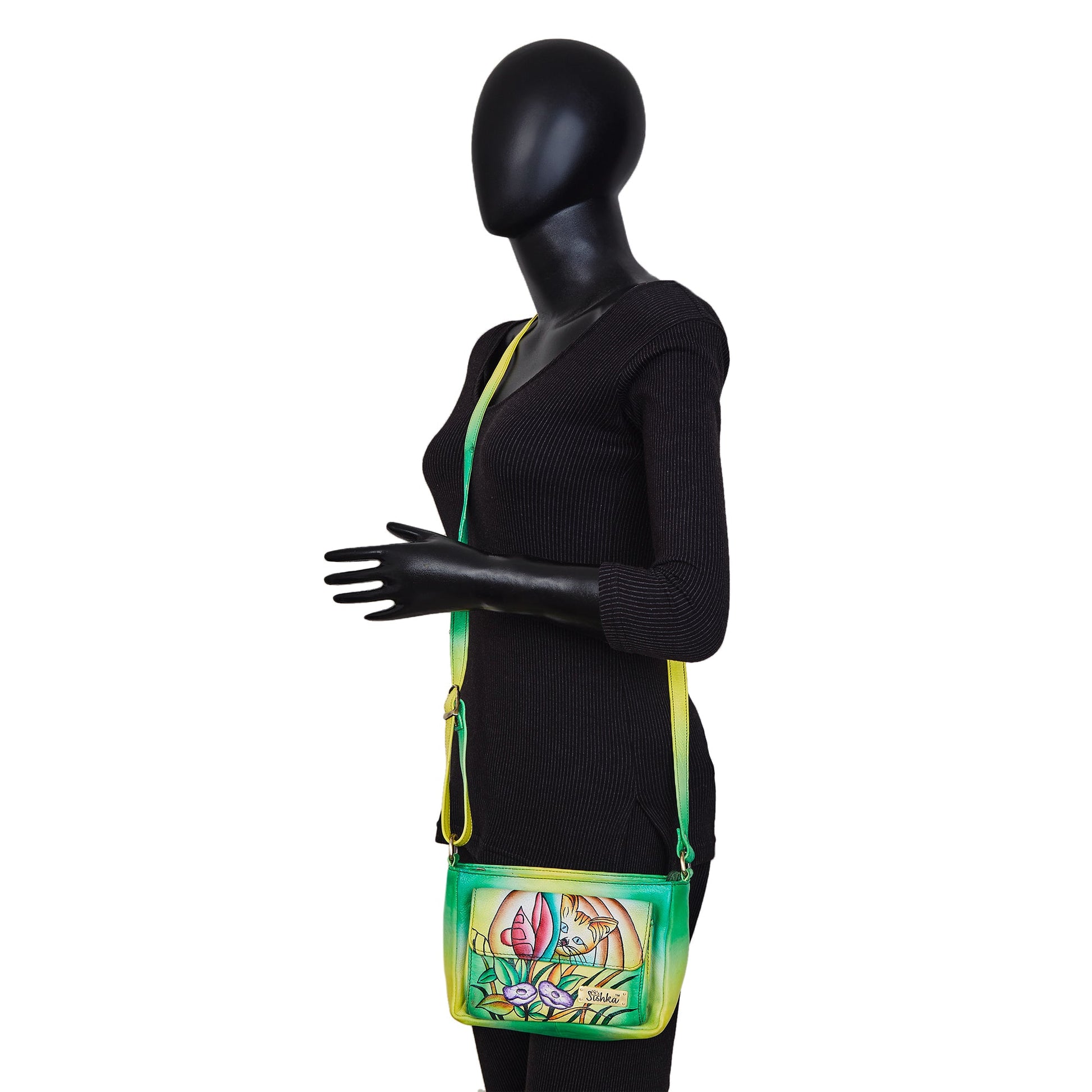 Hand-Painted Cat Art Crossbody Bag