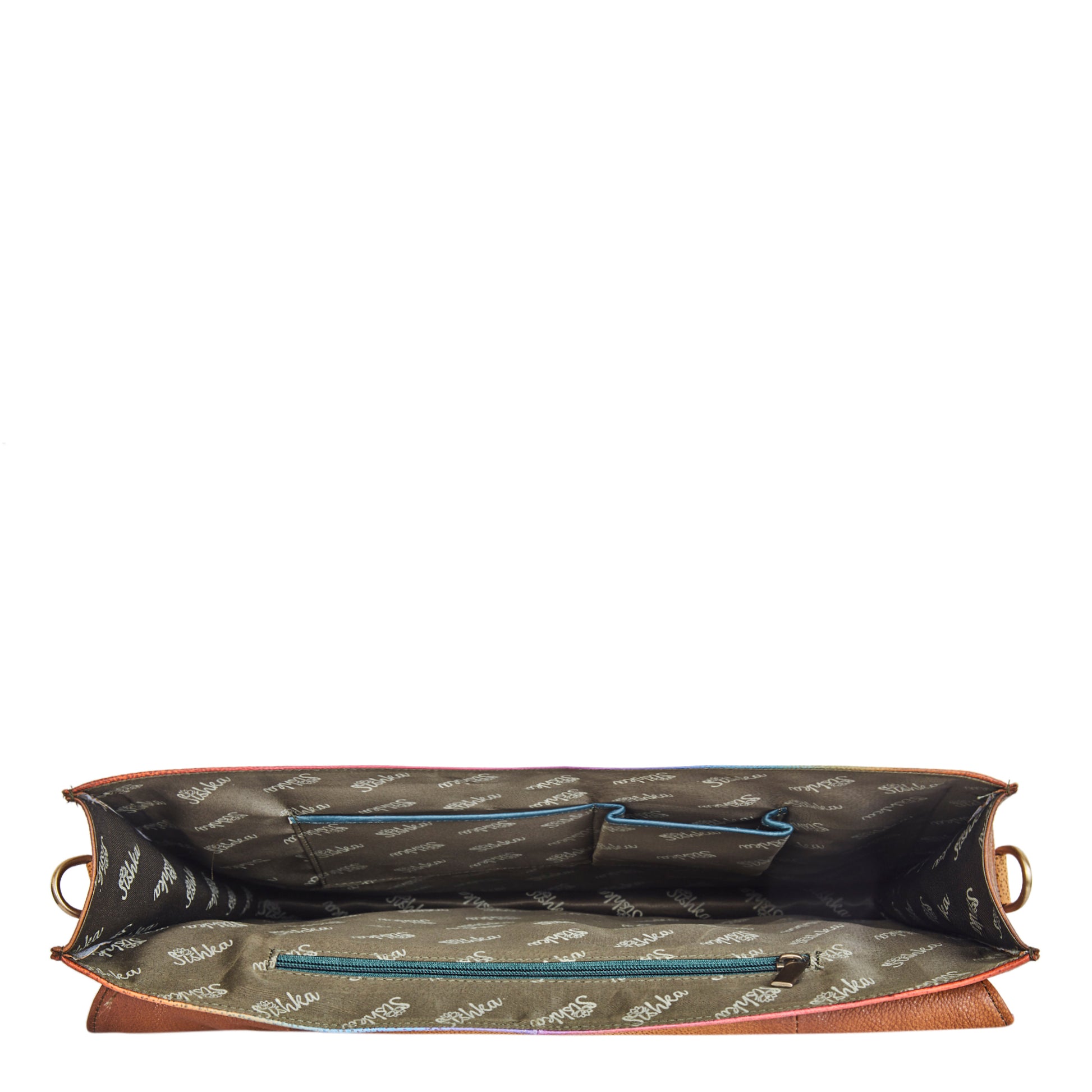 Hand-Painted Leather Briefcase Bag – Bright Abstract Design