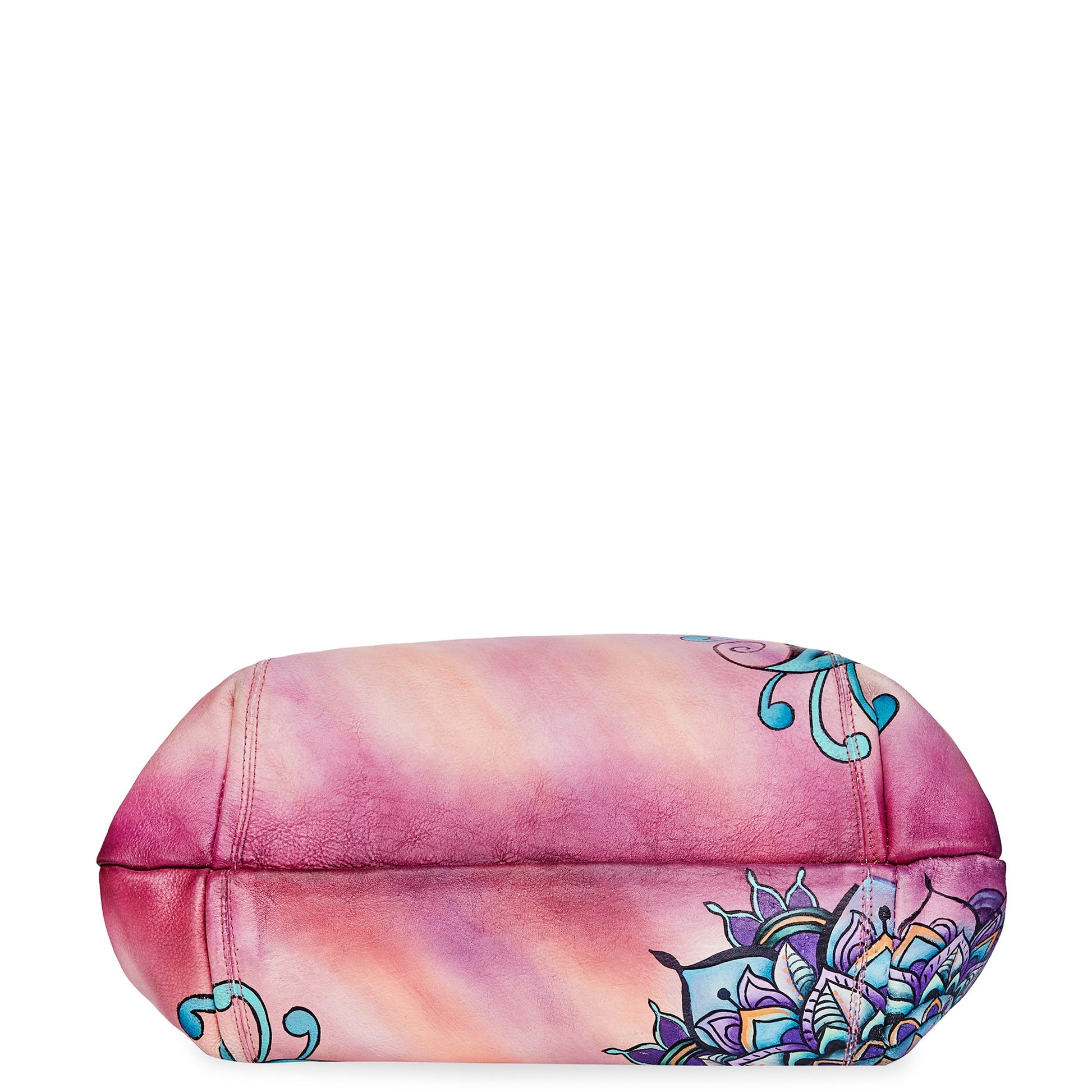 Hand-Painted Mandala Leather Tote Bag for Women - Perfect for Traveler