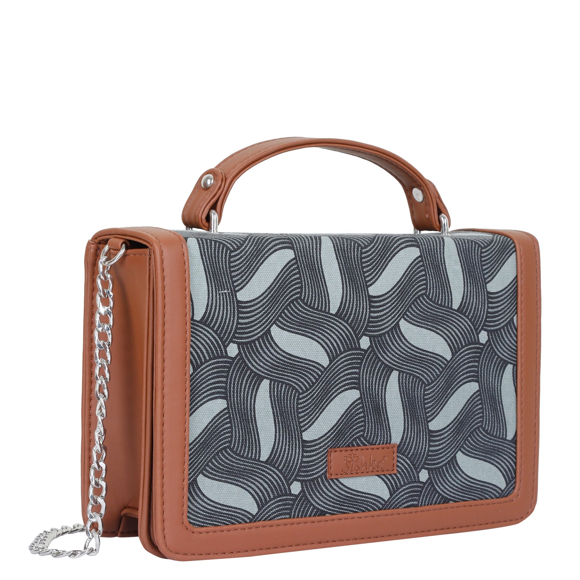 Handcrafted Wave Print Crossbody Sling Bag – Women’s Fabric Purse with Chain Strap