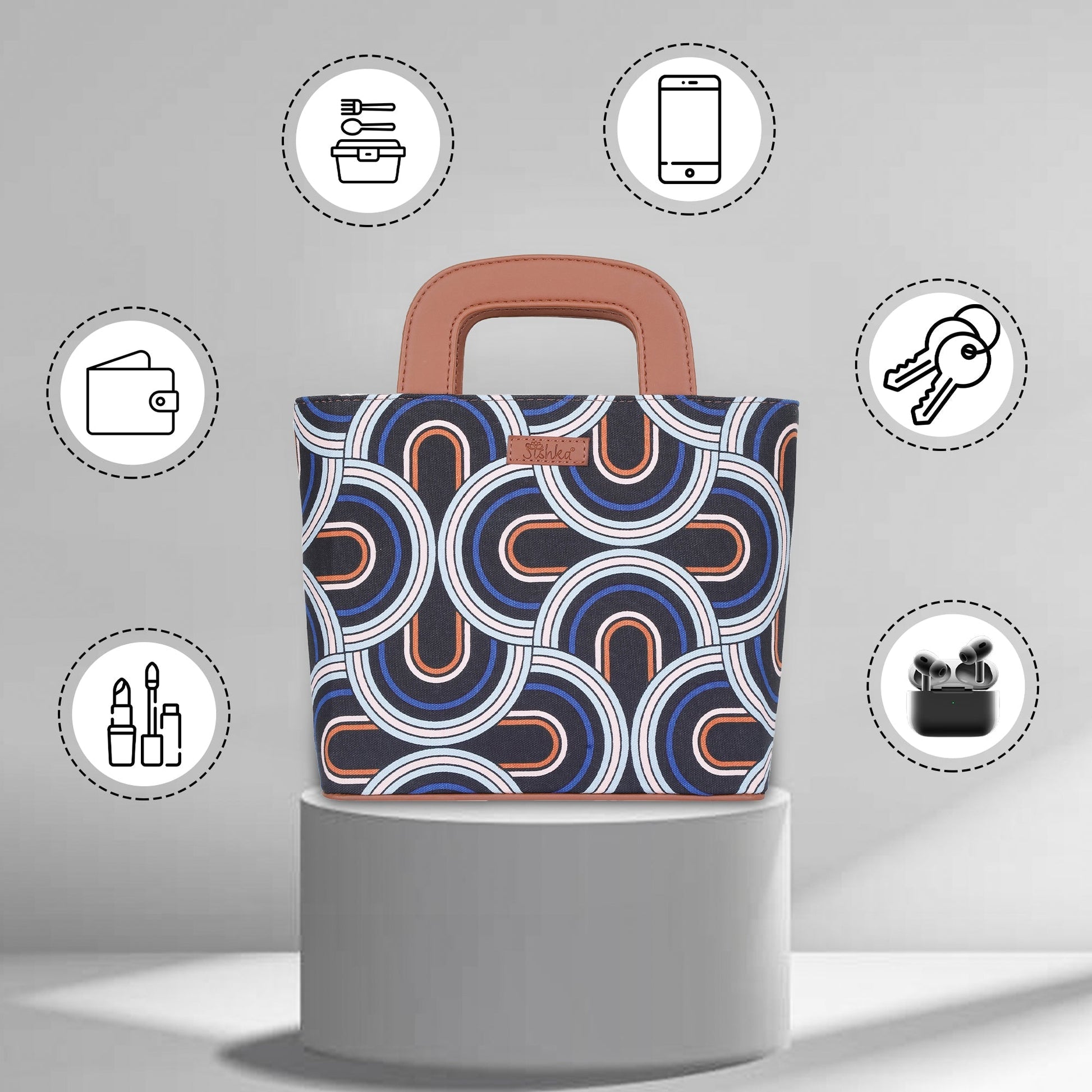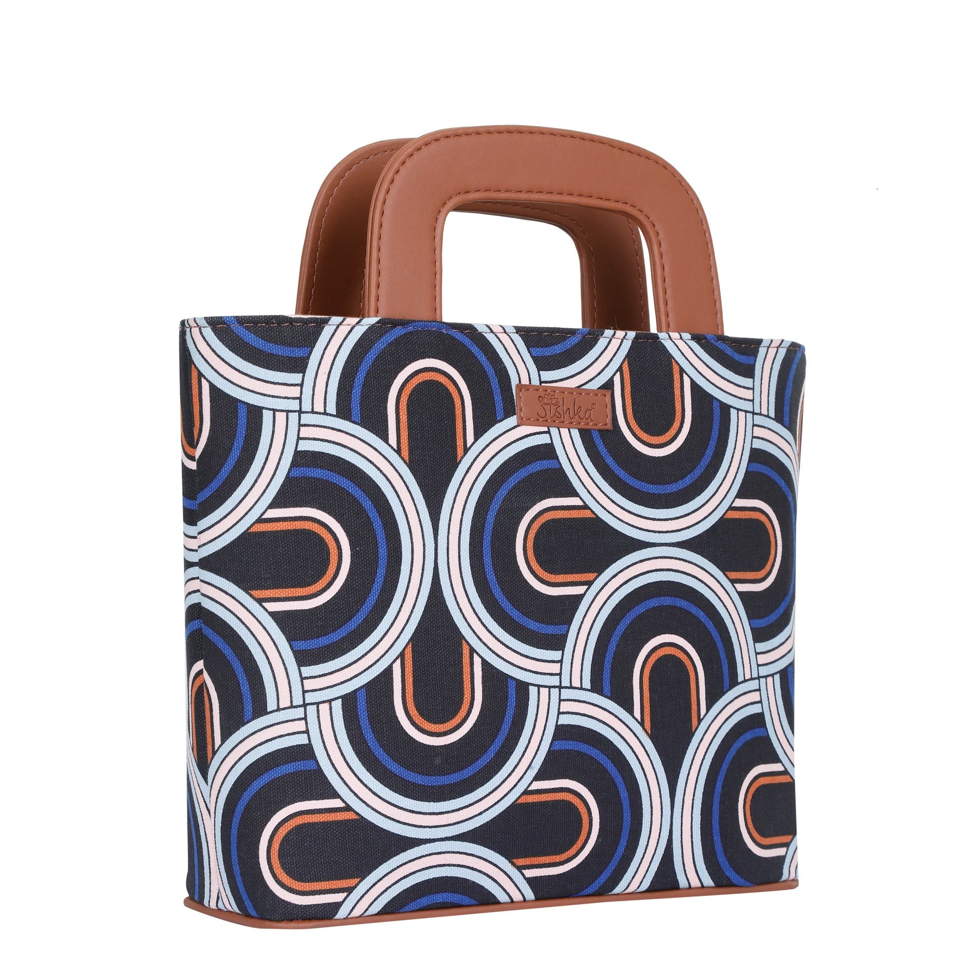 Abstract Printed Handbag – Handcrafted Women’s Top Handle Tote with Leather Trim