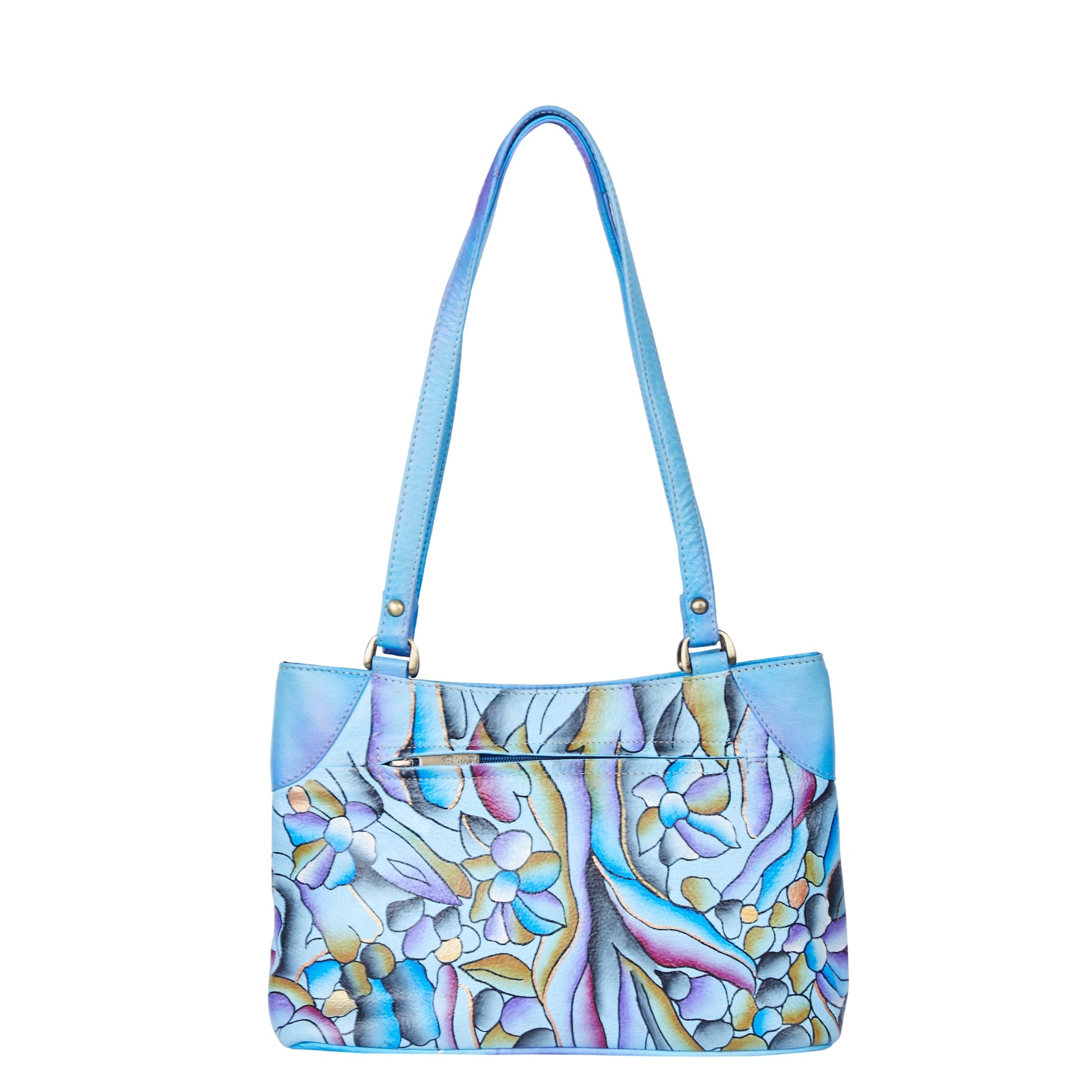 Handpainted Abstract Art Blue Leather Shoulder Bag