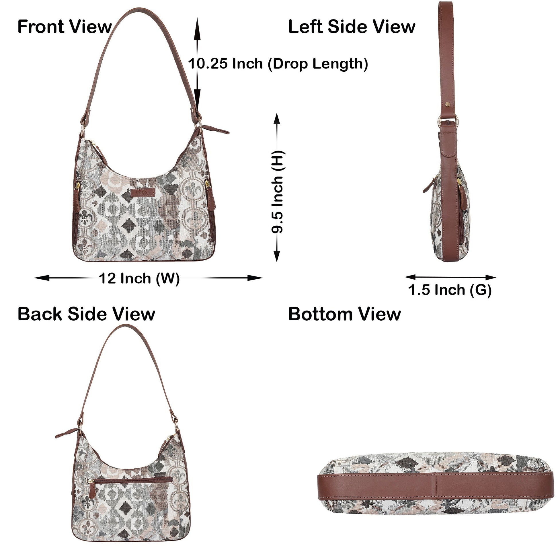 Abstract Pattern Tapestry Hobo Bag For Women| Elegant Leather Shoulder & Satchel Purse with Leather Strap for Work & Travel