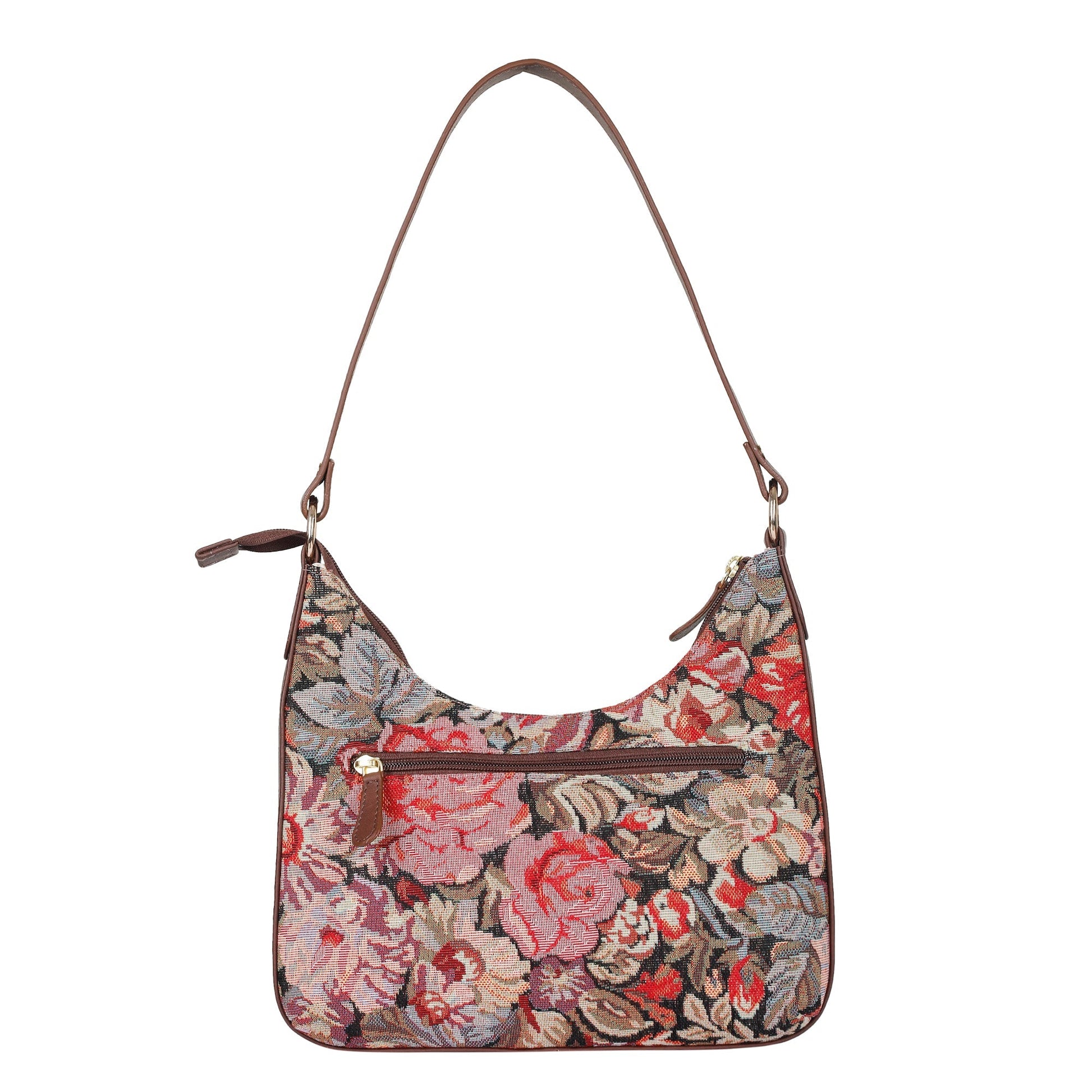 Ladies Hobo Bag in Floral Design Tapestry Fabric | Leather-Trimmed Shoulder Satchel with Leather Strap for Everyday Use