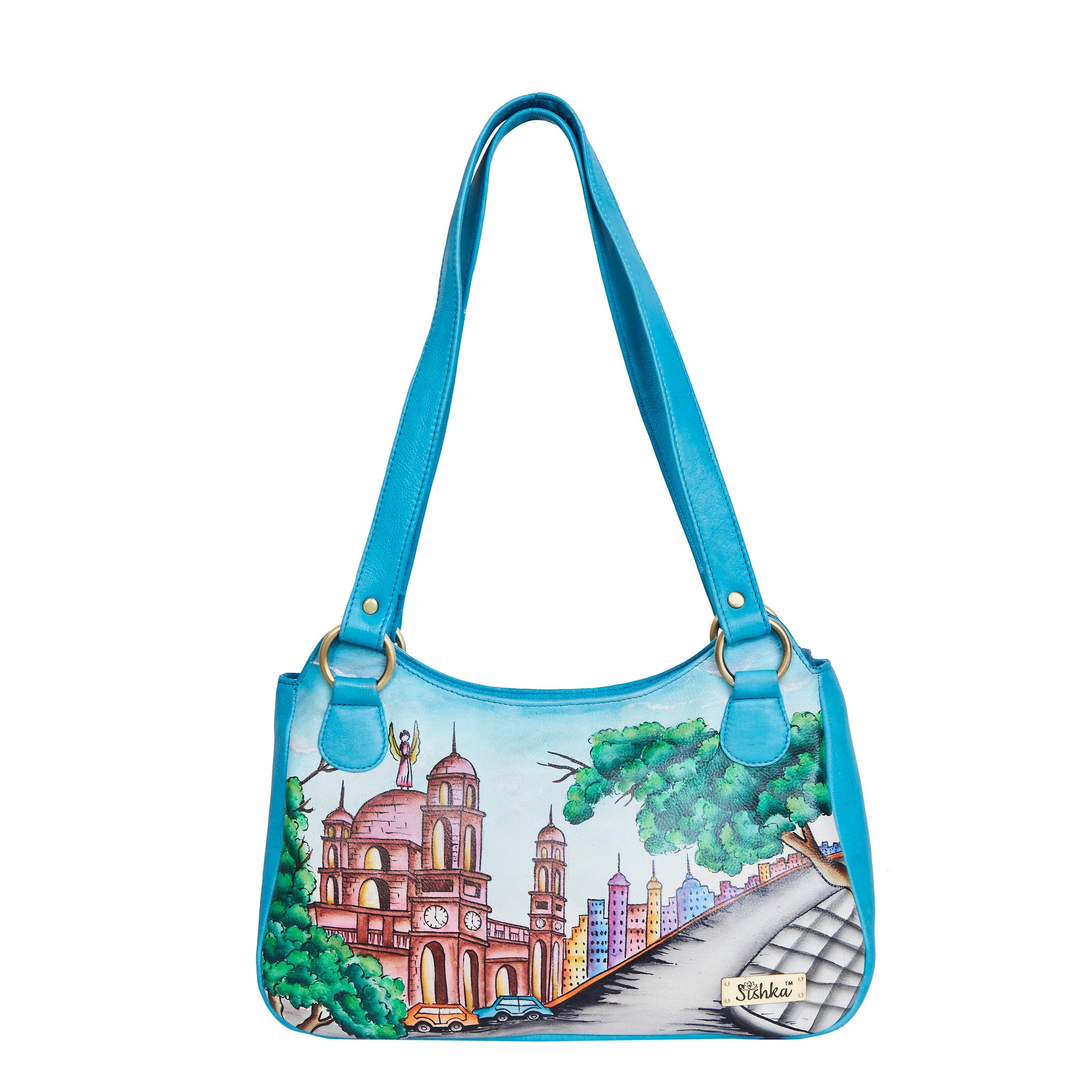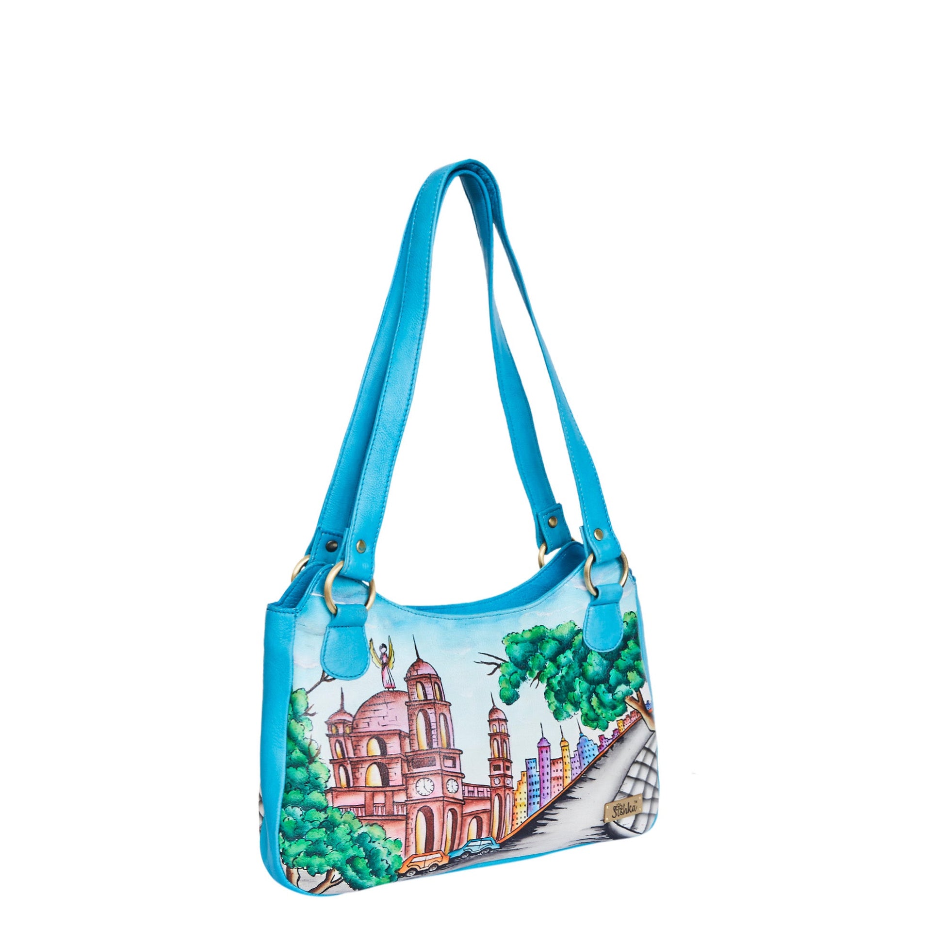 Kolkata-Themed Handpainted Leather Shoulder Bag