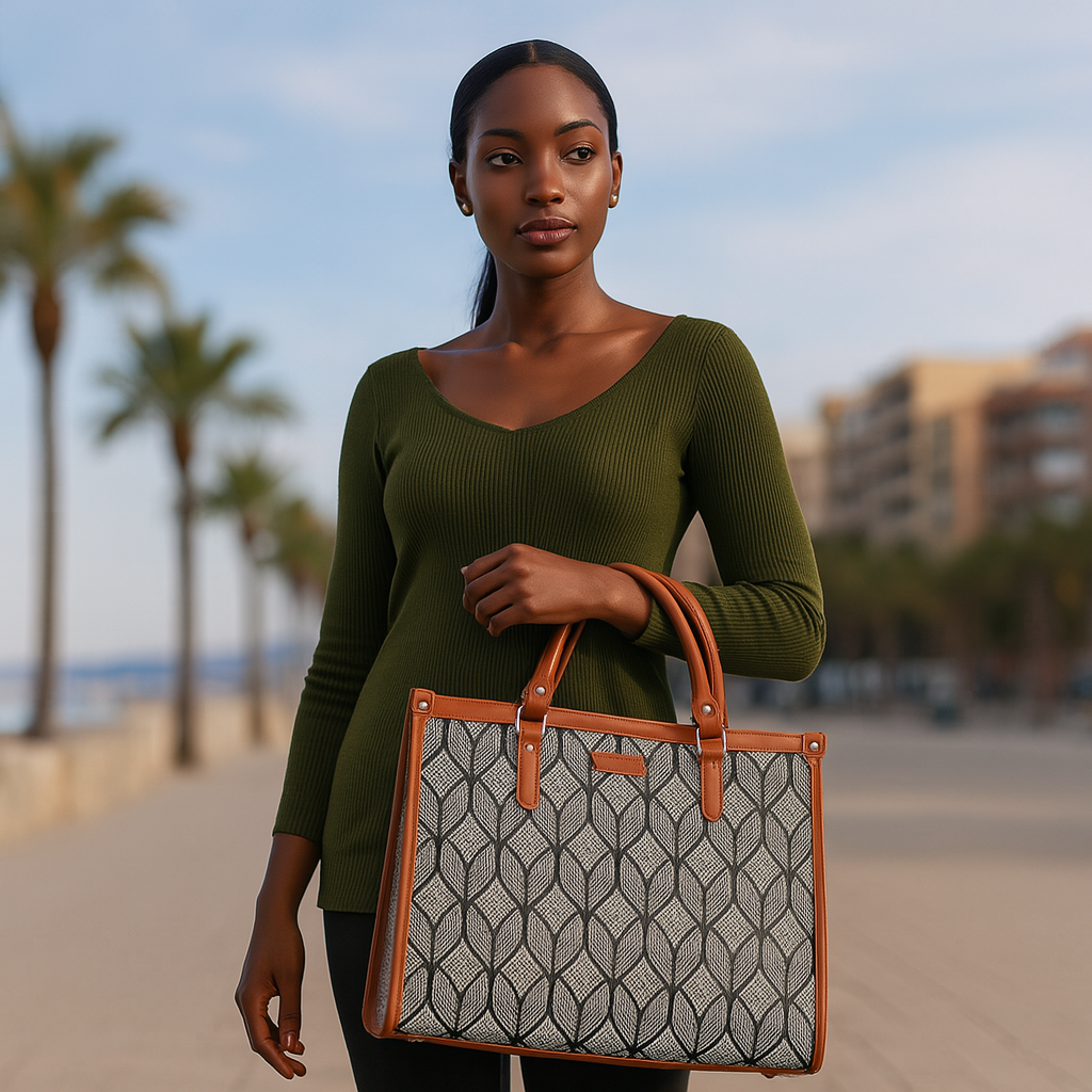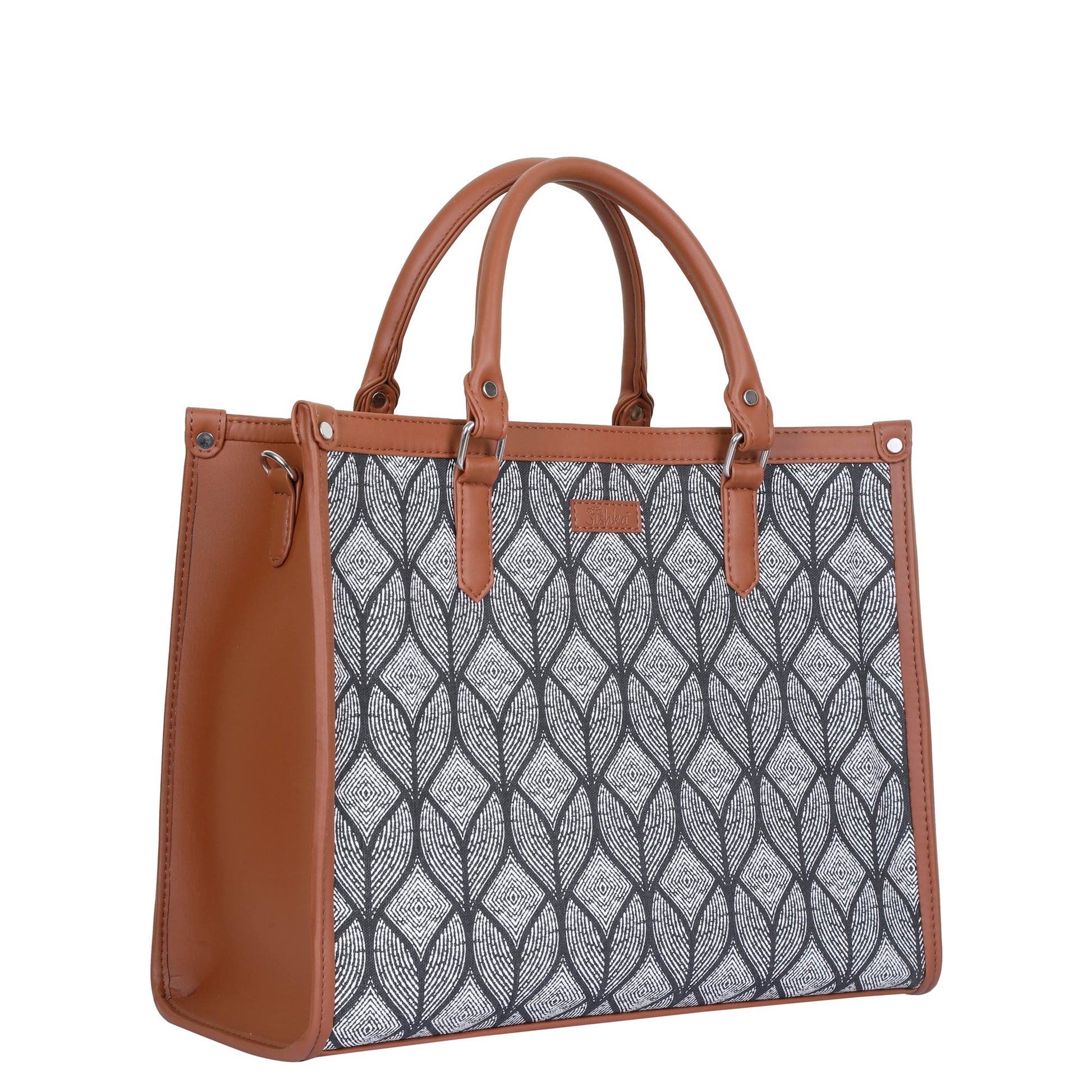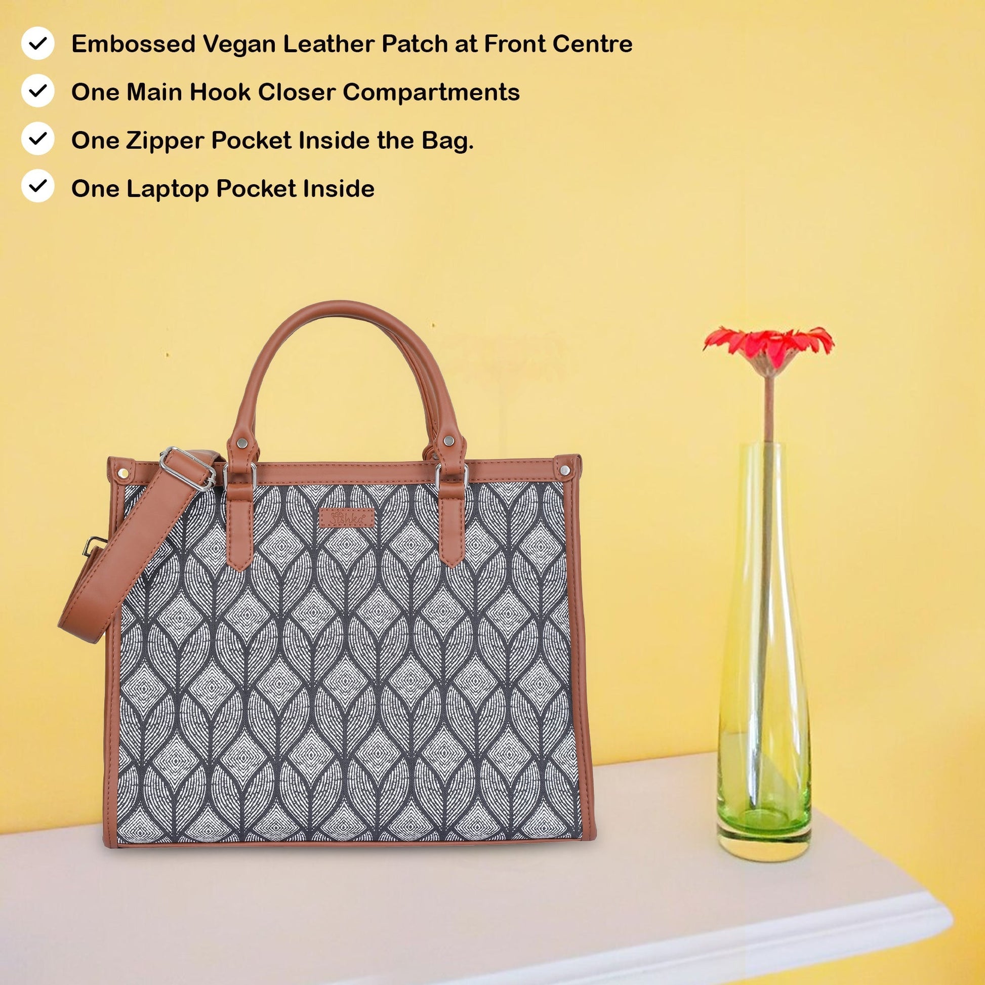 Monochrome Handcrafted Printed Laptop Bag – Elegant Shoulder Satchel for Travel & Work