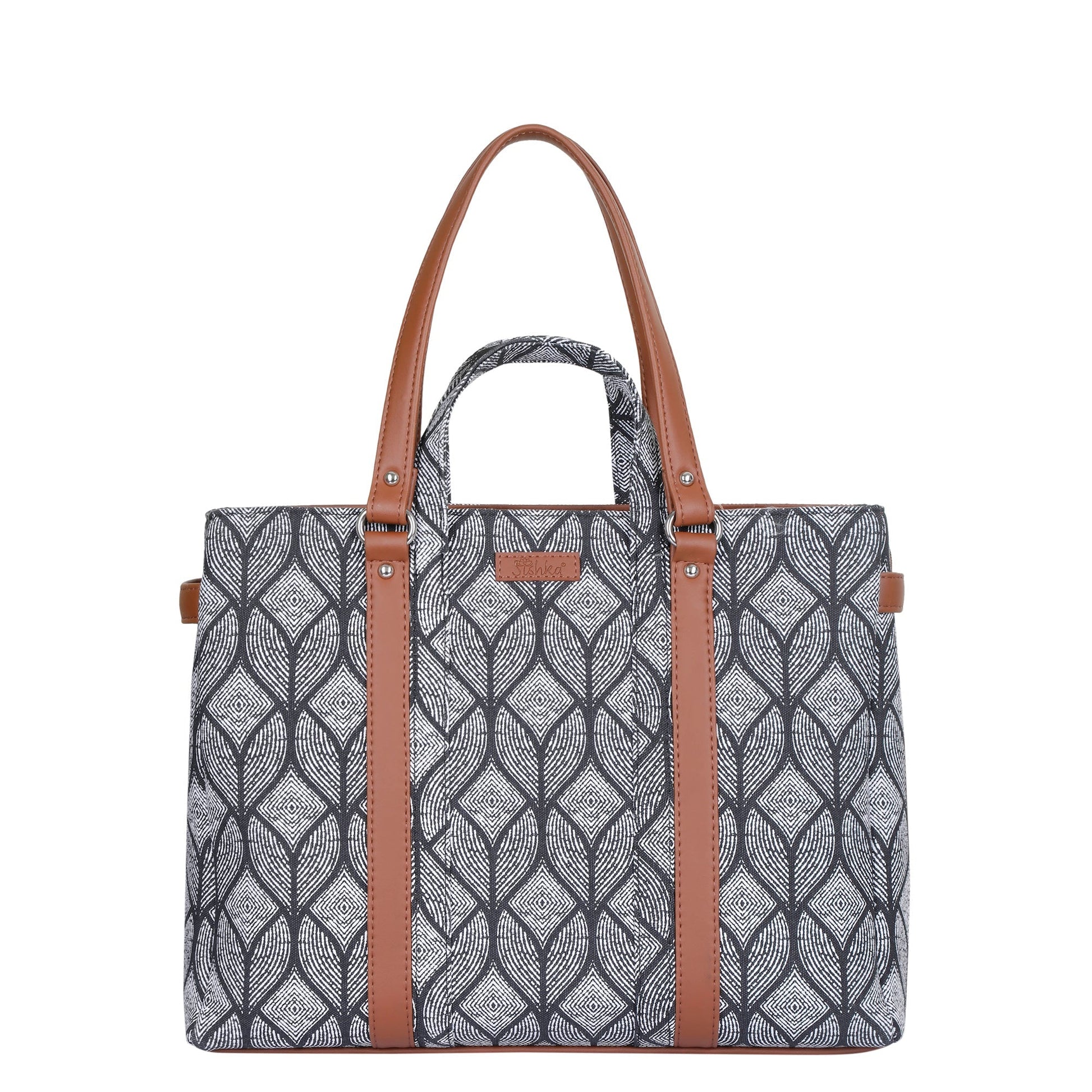 Monochrome Handcrafted Printed Tote Bag – Elegant Women’s Shoulder Purse with Vegan Handles