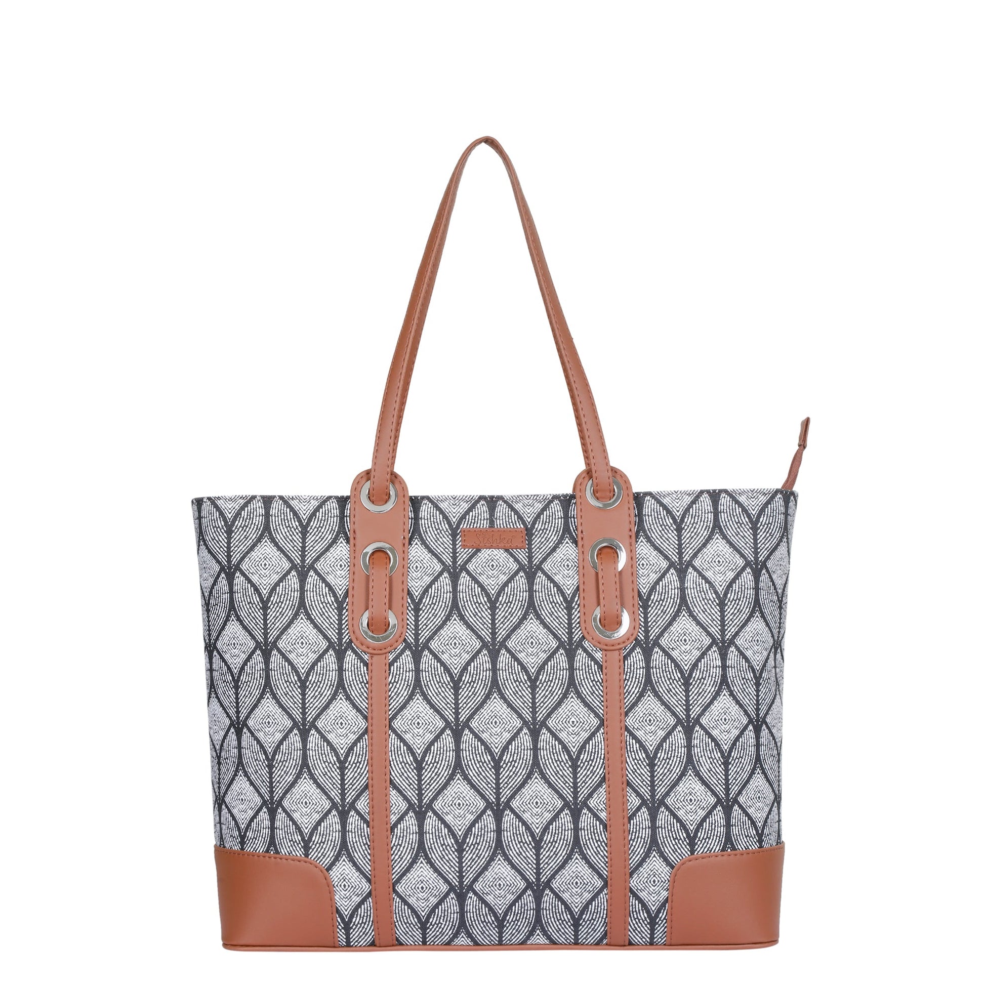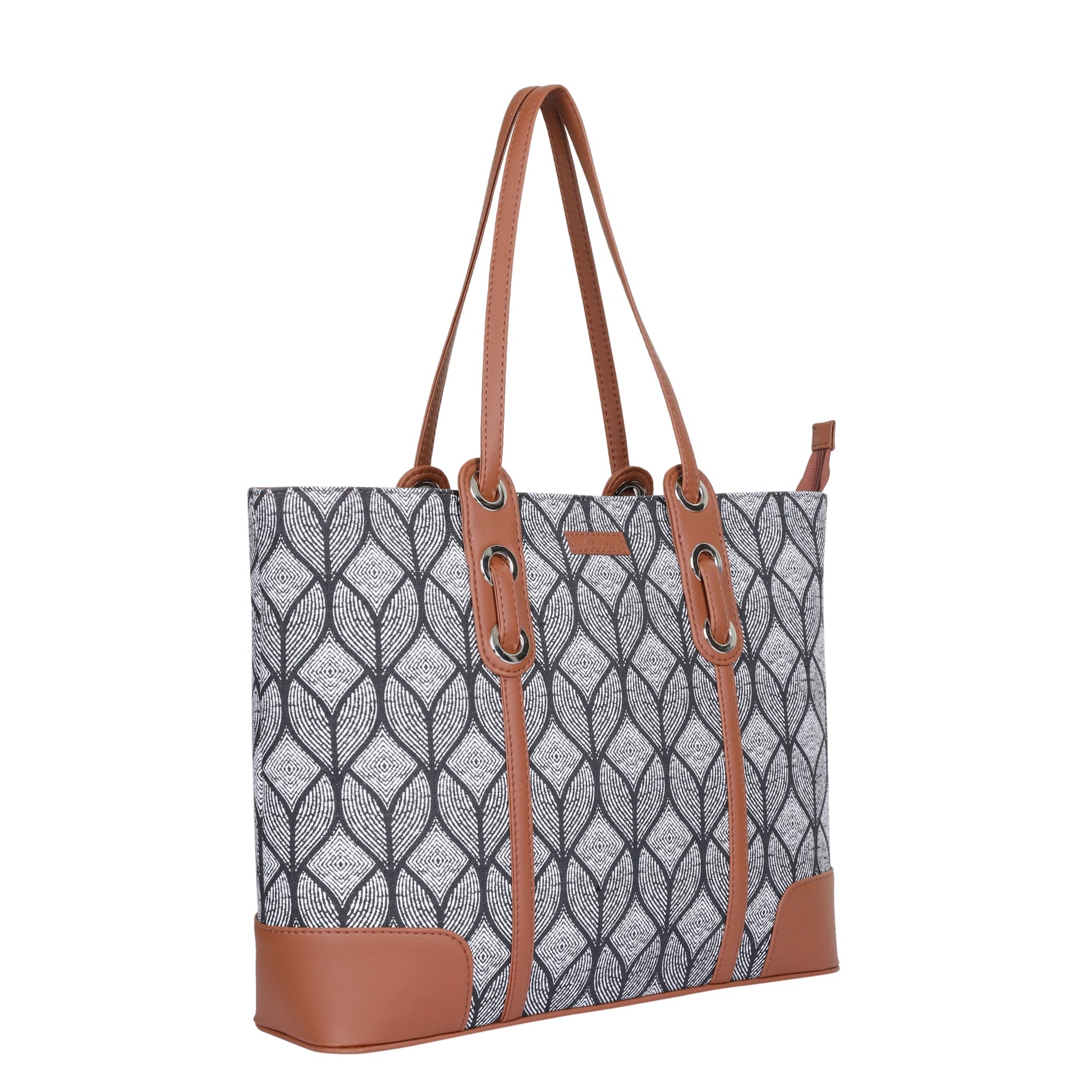 Monochrome Handcrafted Printed Tote Bag – Vegan-Trim Satchel for Women’s Work & Travel