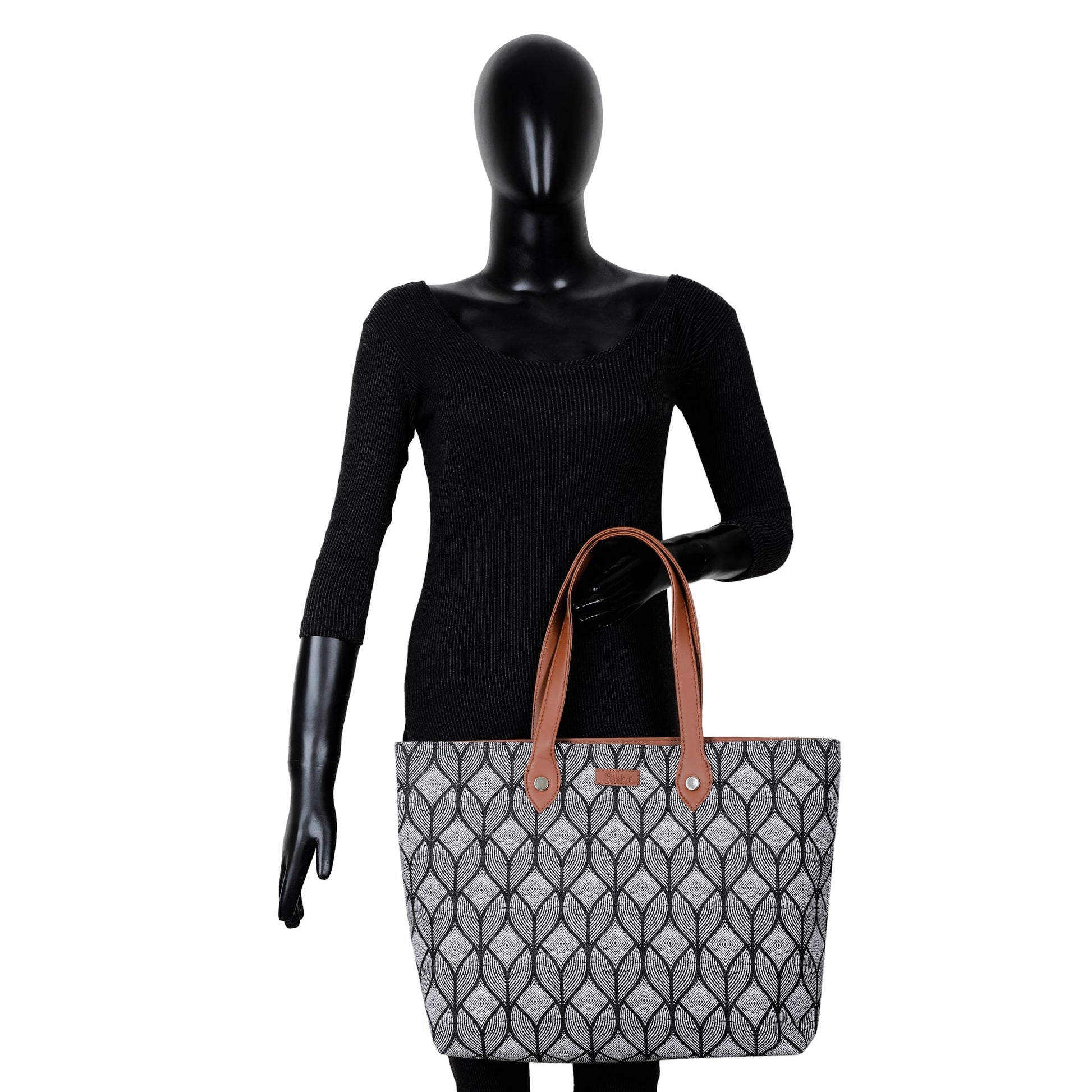 Monochrome Handcrafted Printed Tote Bag for Women – Shoulder Purse & Satchel