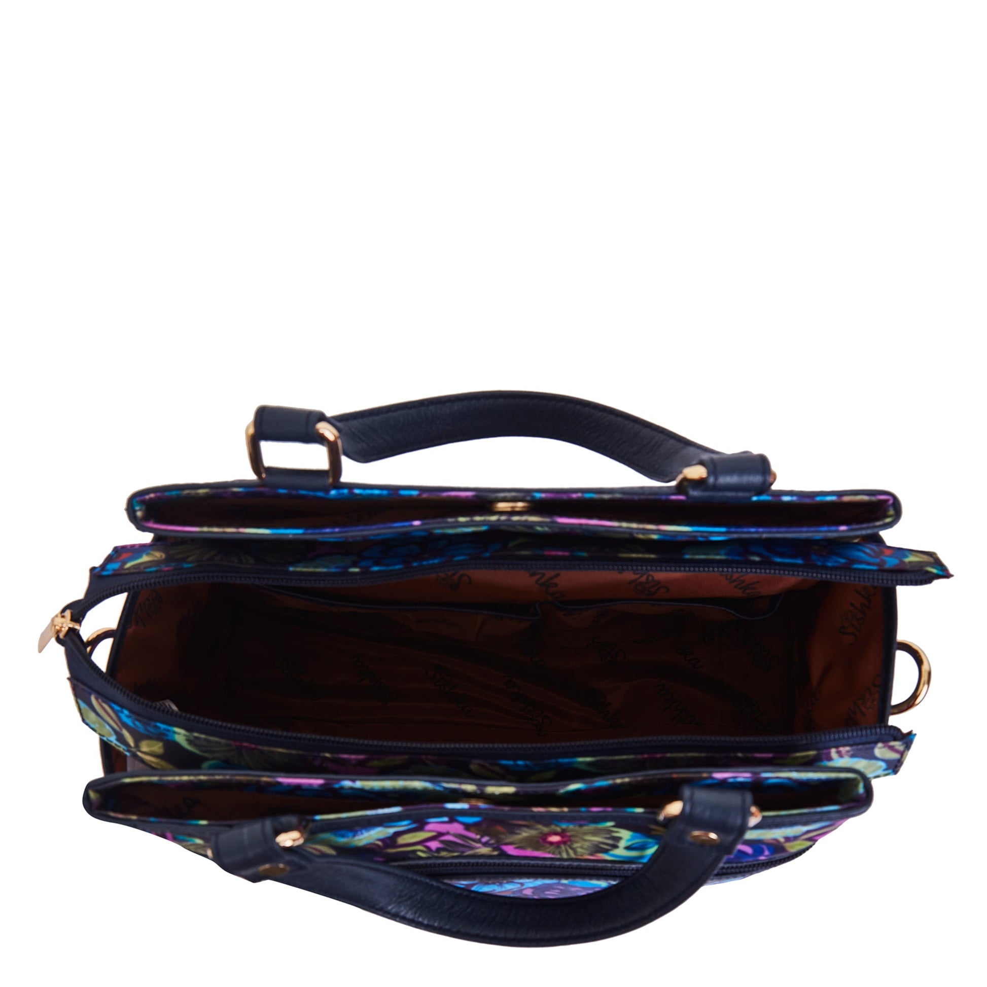 Featuring a lively botanical fabric print, this multi-compartment satchel brings a pop of color and charm to your ensemble.
