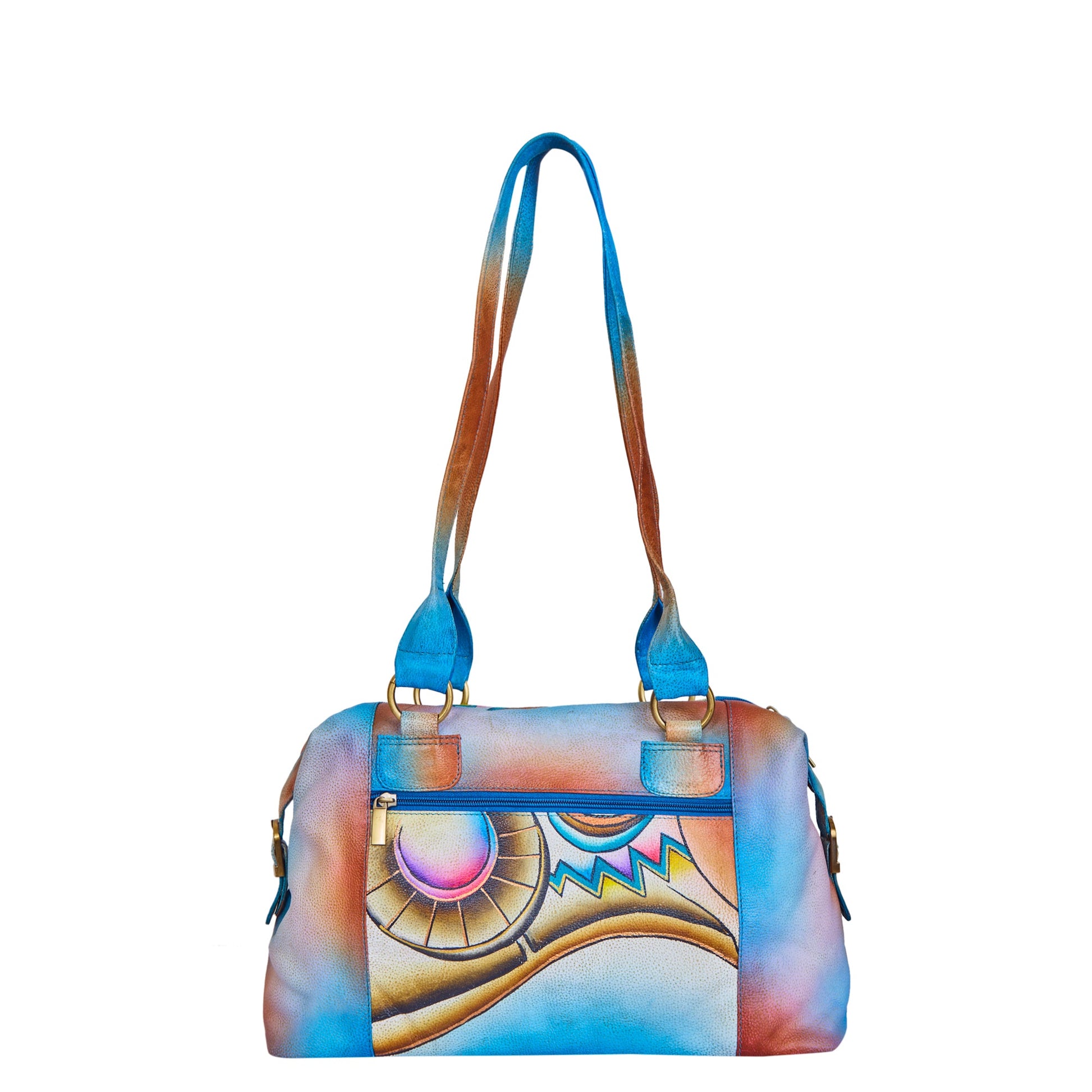 Artistic Expression: Hand-painted leather hobo bags with two distinct designs: a vibrant butterfly on a black background, and a multicolor abstract design. Both add bold, artistic flair, perfect for showcasing unique style.