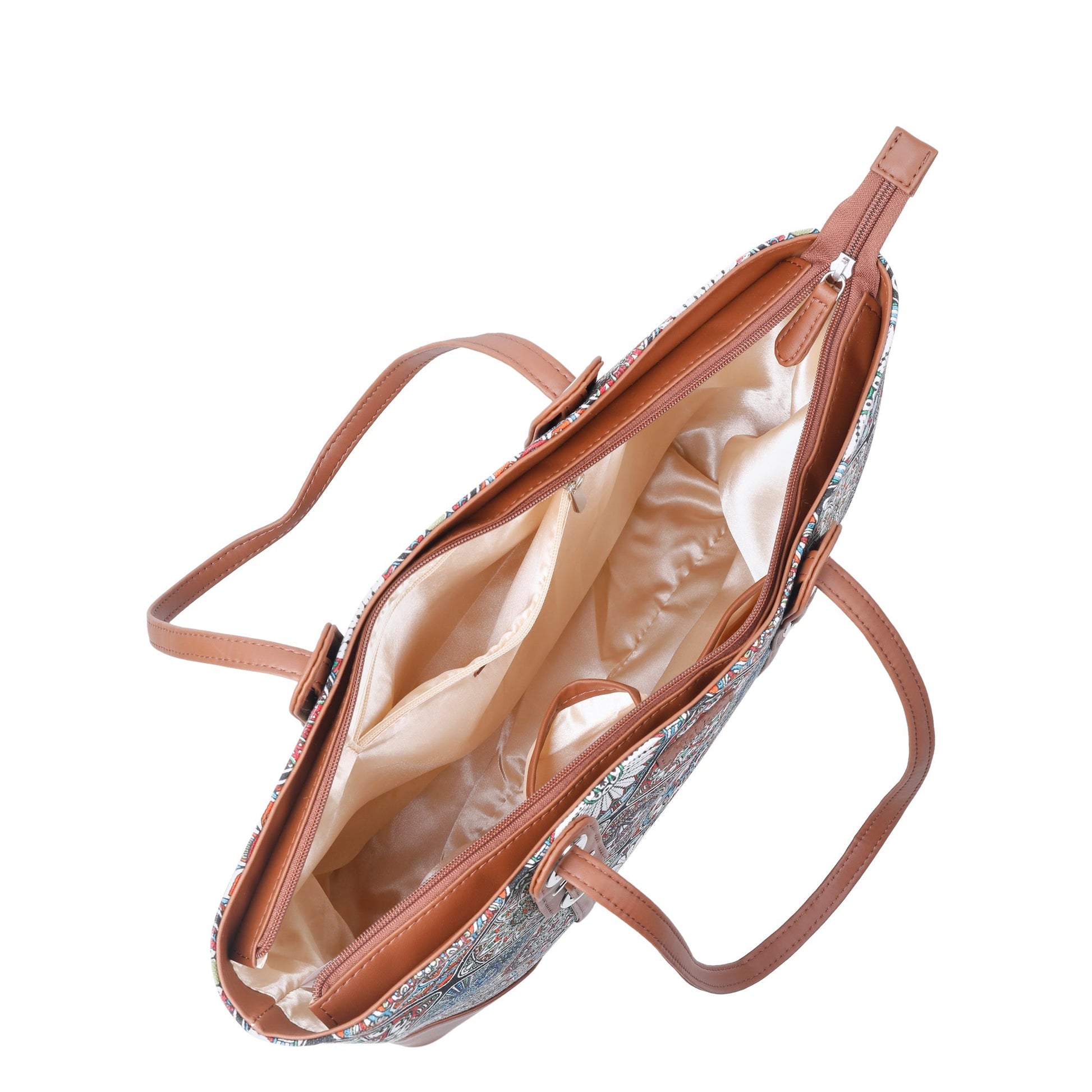 Multicolor Handcrafted Printed Tote Bag – Shoulder Purse with Vegan Trim for Daily Use
