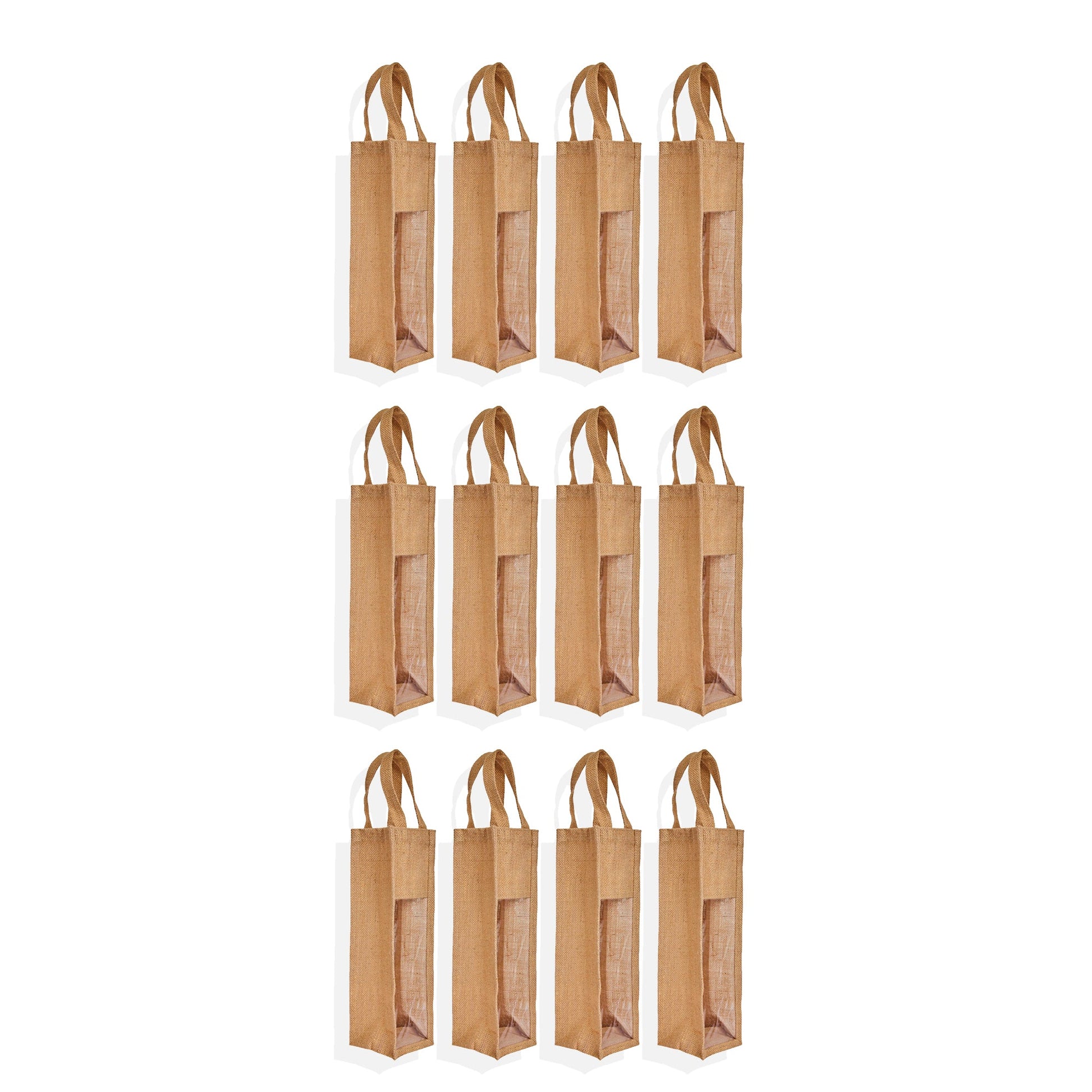 - Bulk Set of 12 for Gifting Needs - This set includes 12 laminated jute wine bags, each designed to hold one standard wine bottle, offering a great solution for bulk gifting and packaging.