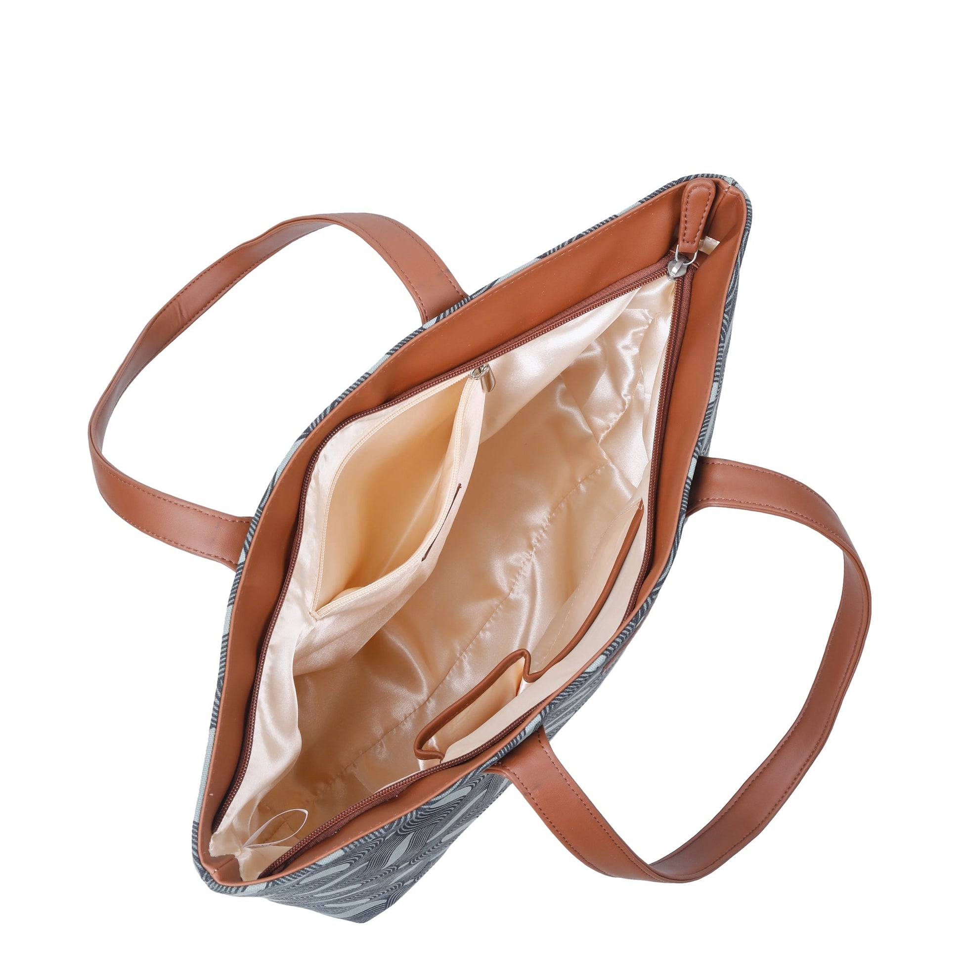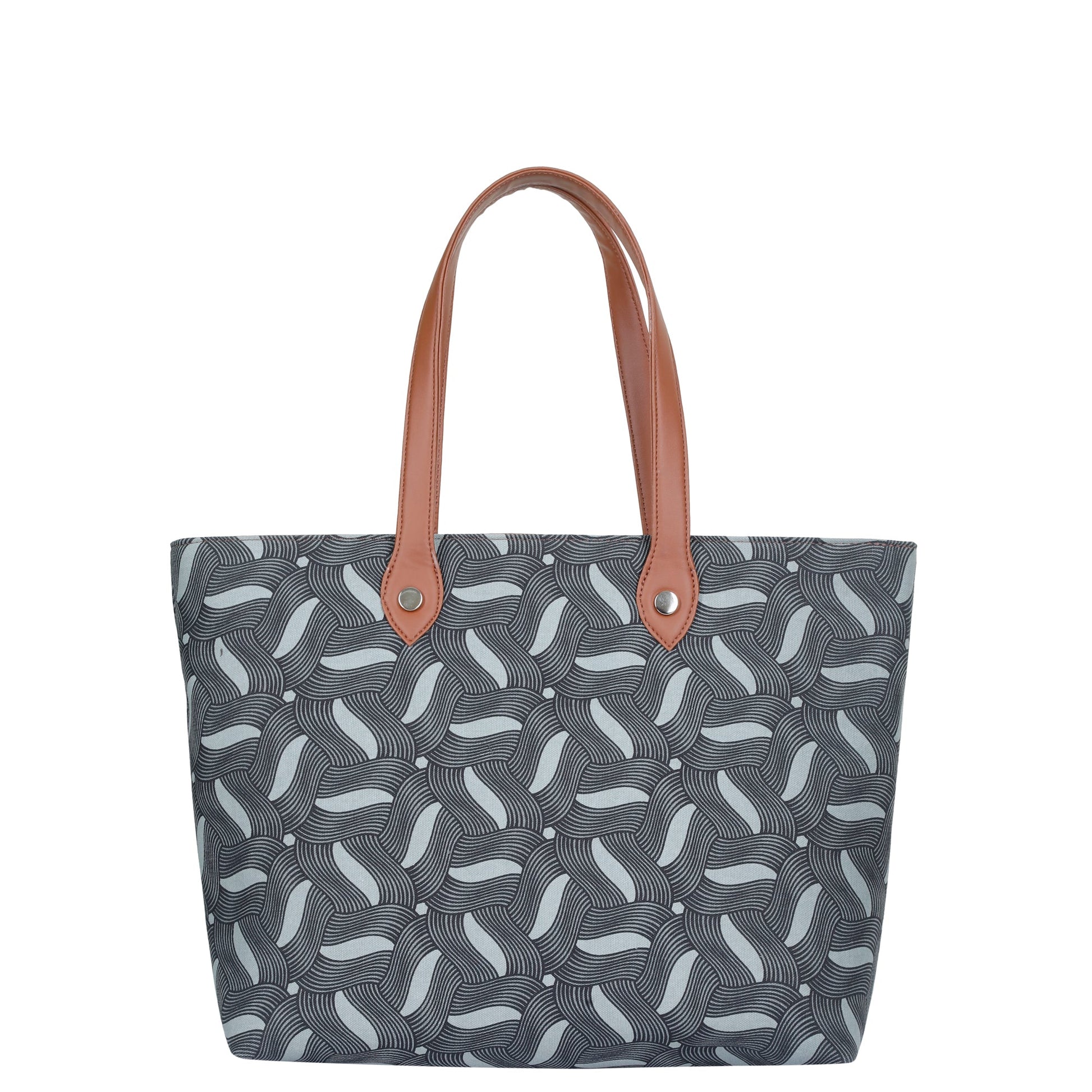 Smart & Sustainable Design: A chic Tote Shoulder Bag crafted from high-quality Hand-Crafted Fabric with vegan leather detailing—offering durability, softness, and an eco-conscious appeal. Features printed patterns on both sides and comes in five elegant prints: Multicolour, Monochrome, Blue, Abstract, and Olive.