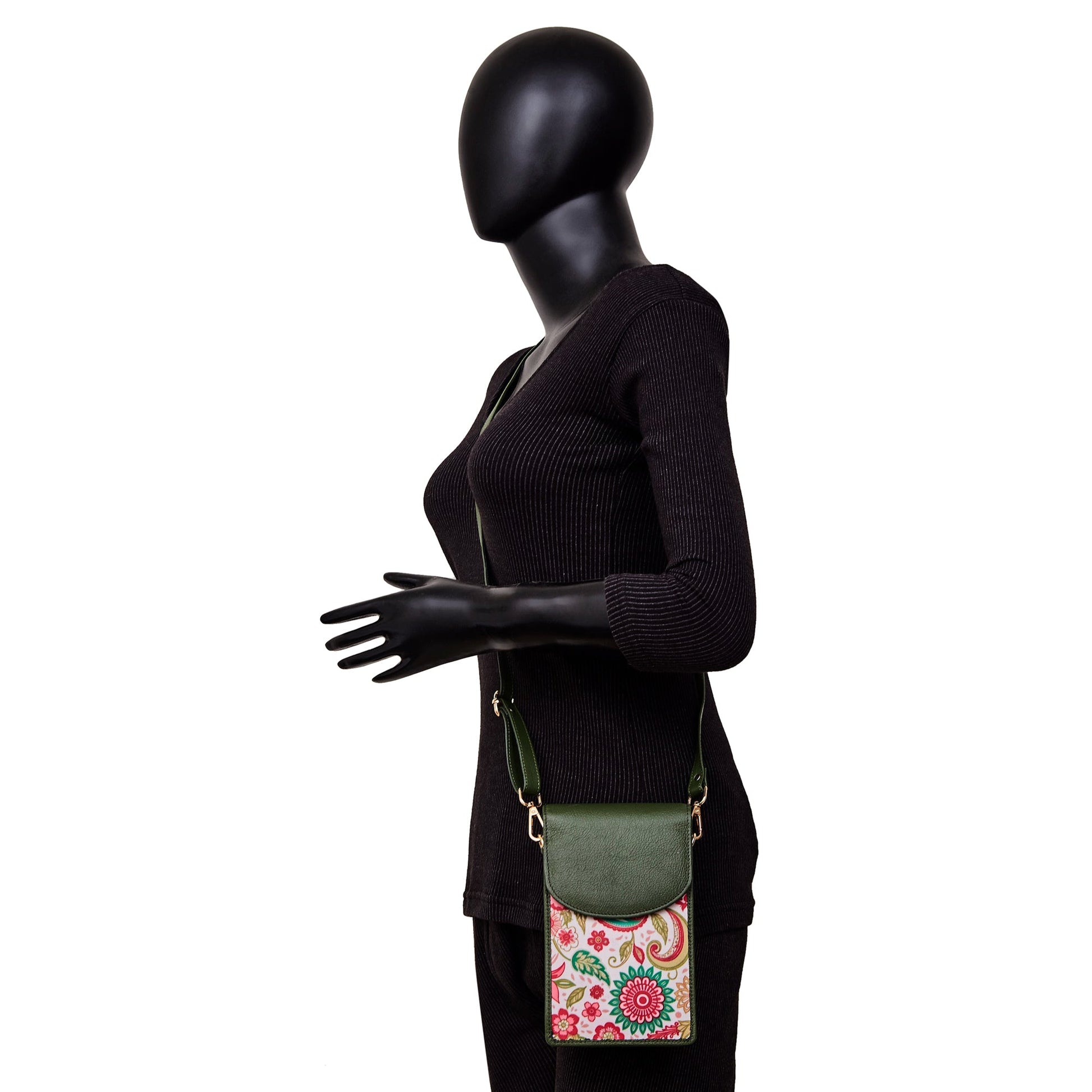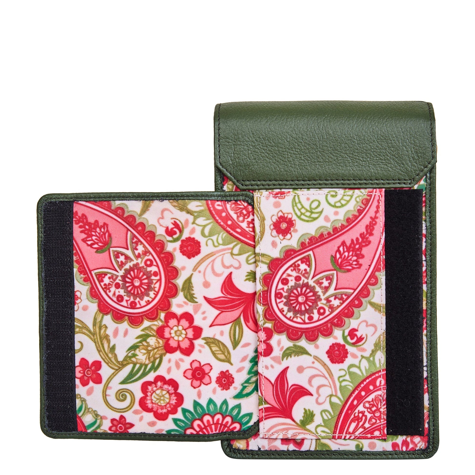 Paisley Elegance Women's Cell Phone Crossbody Wallet with Genuine Leather Details