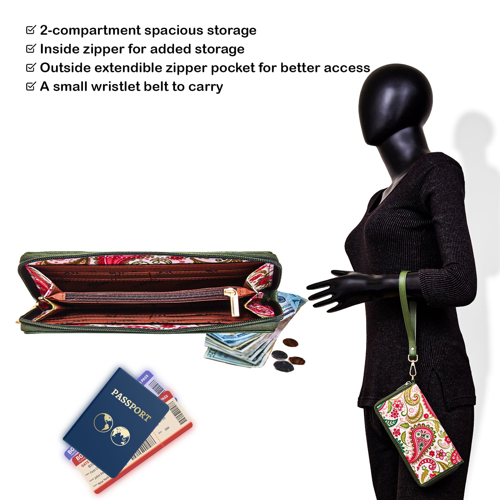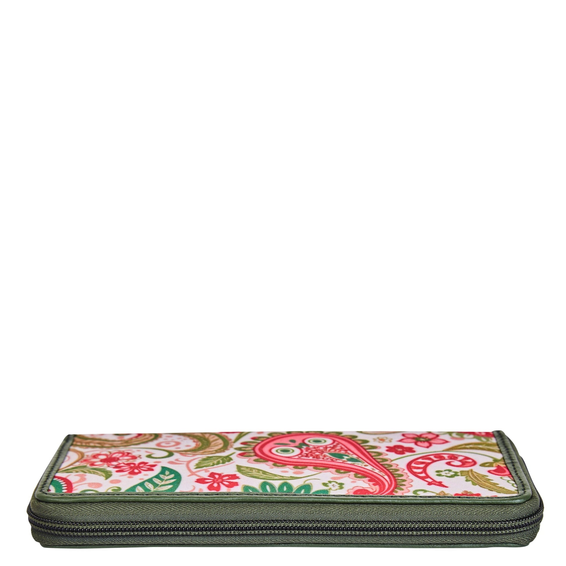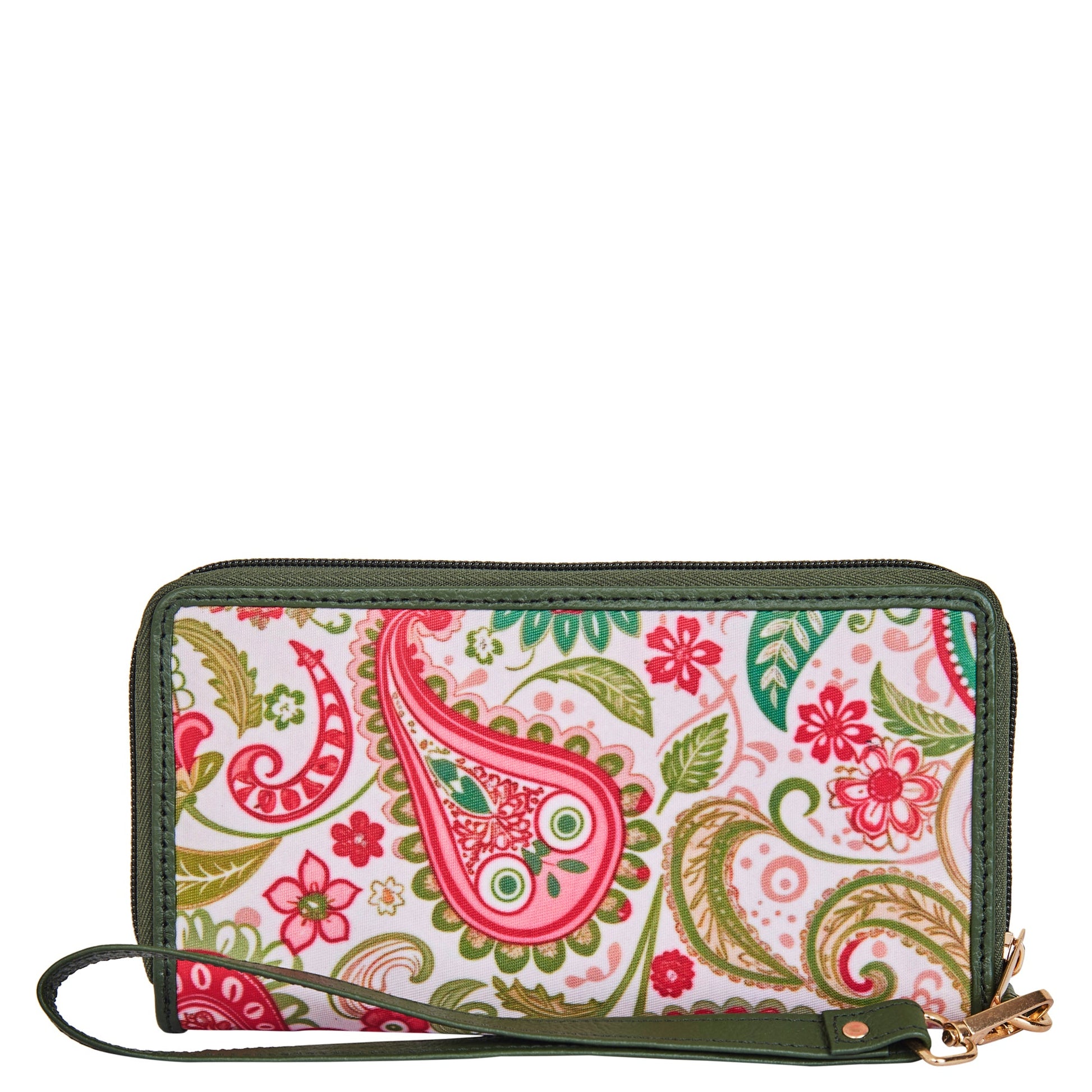 Refined Paisley Print Wristlet Wallet for Women – Leather-Trimmed and Luxurious