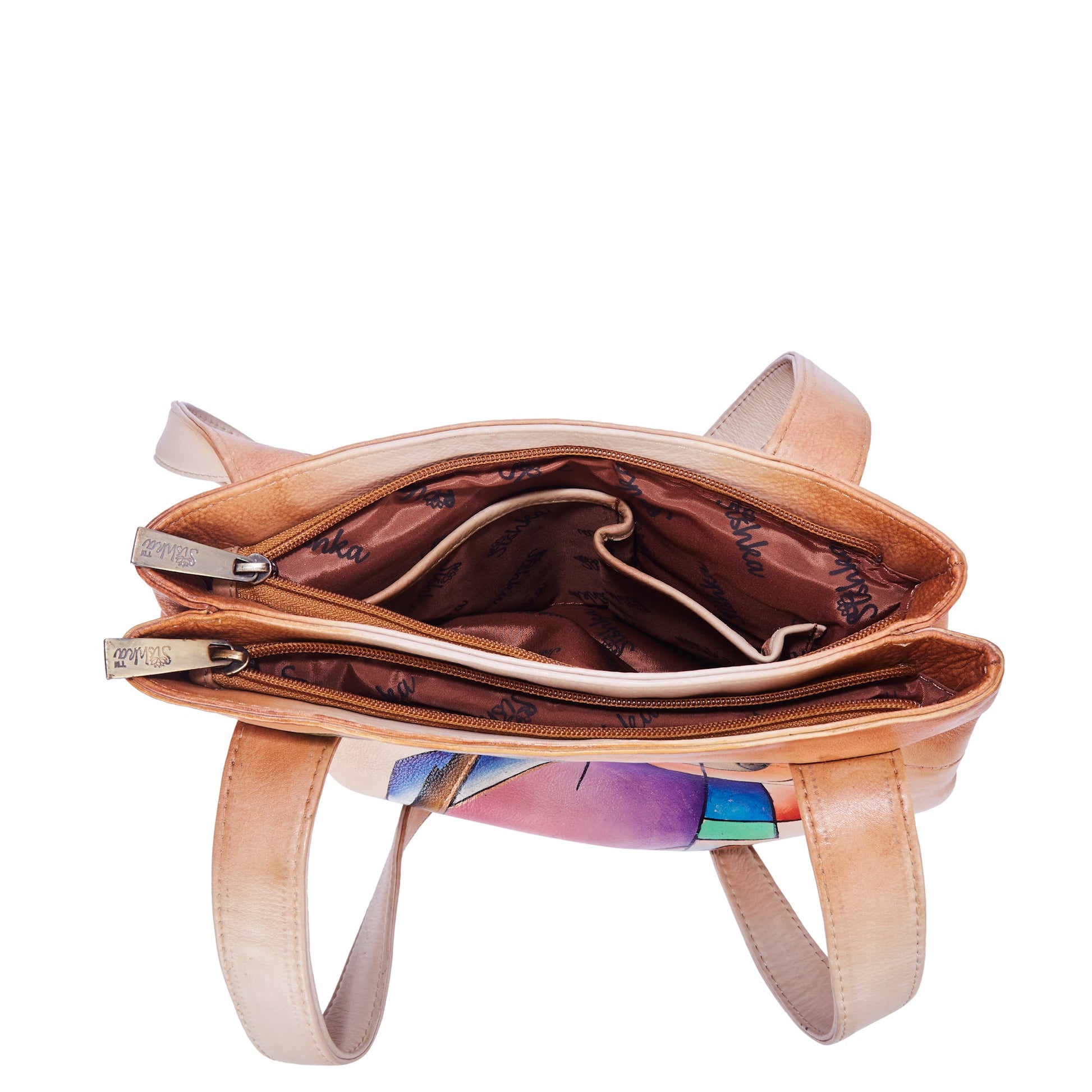 Stylish Hand-Painted Brown Leather Tote Bag