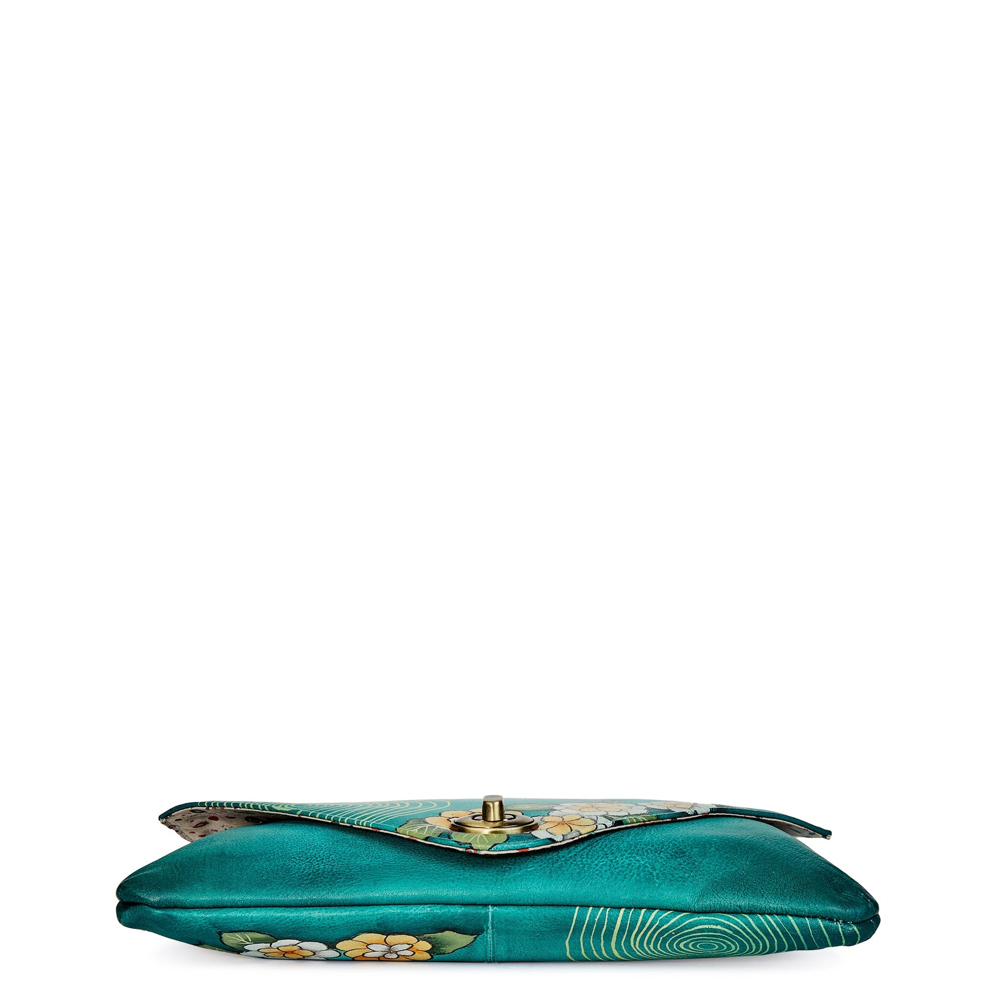 Swan Artwork Handpainted Leather Envelope Clutch Bag