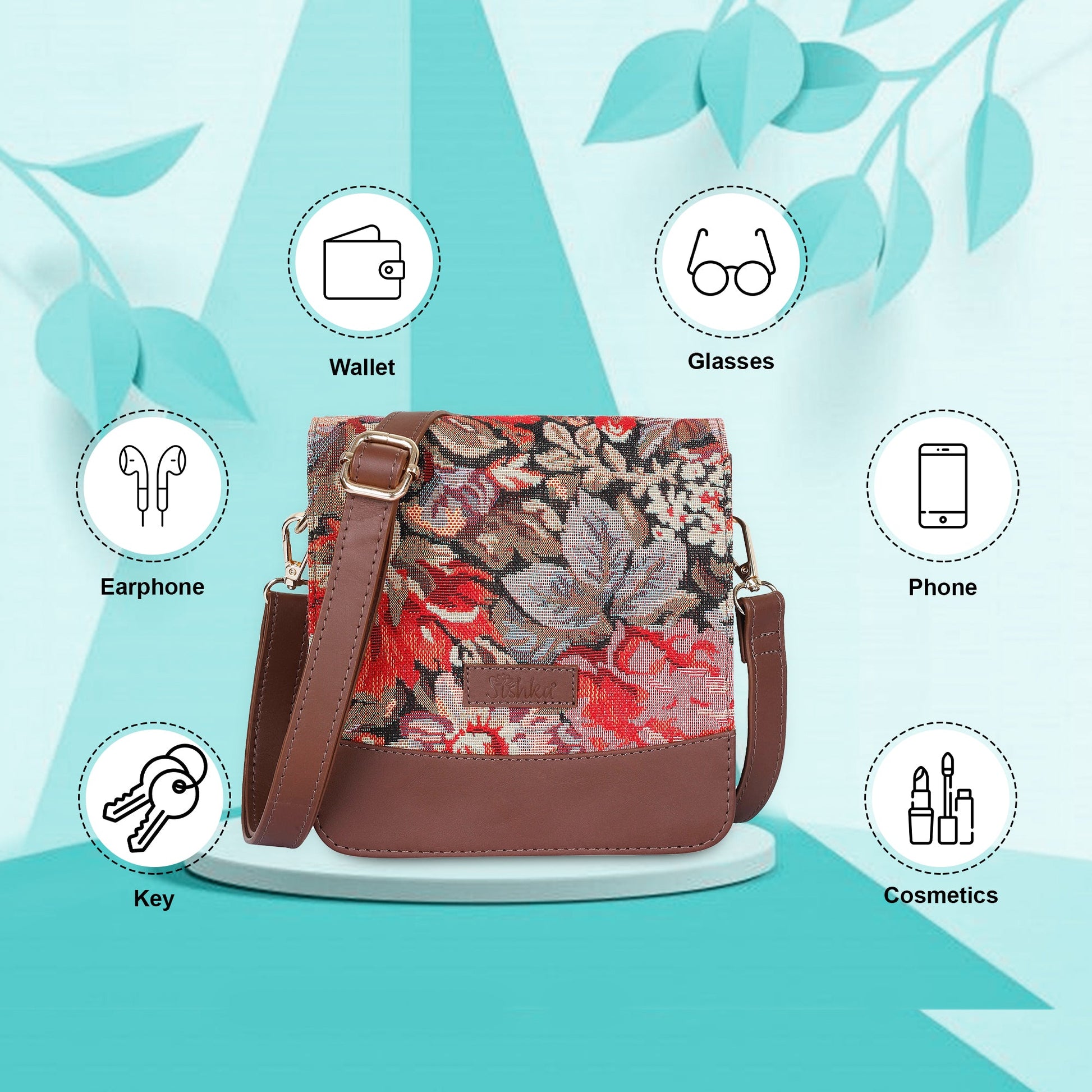 Floral Tapestry Crossbody Bag – Women’s Sling Shoulder Purse with Leather Trim