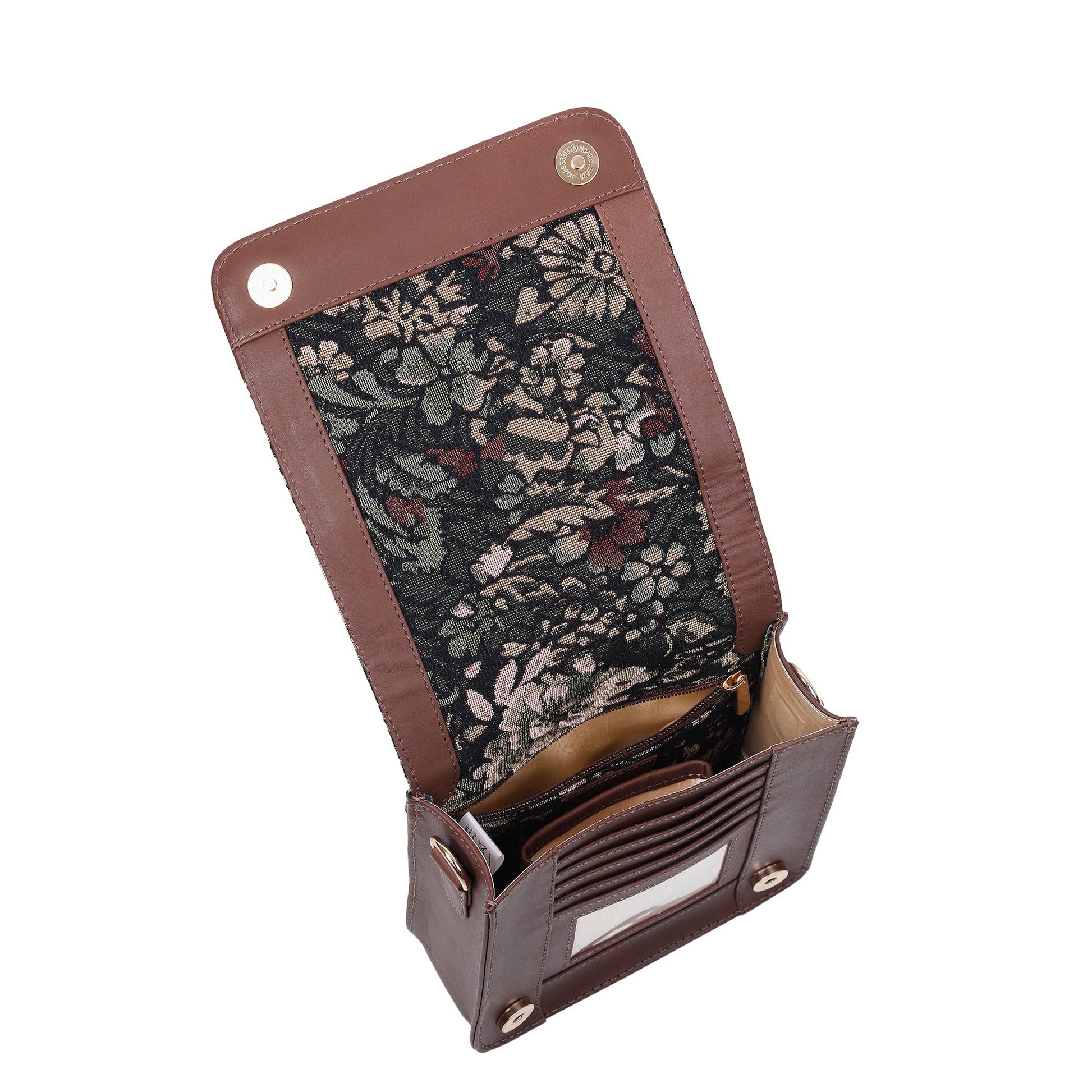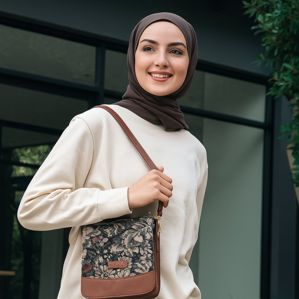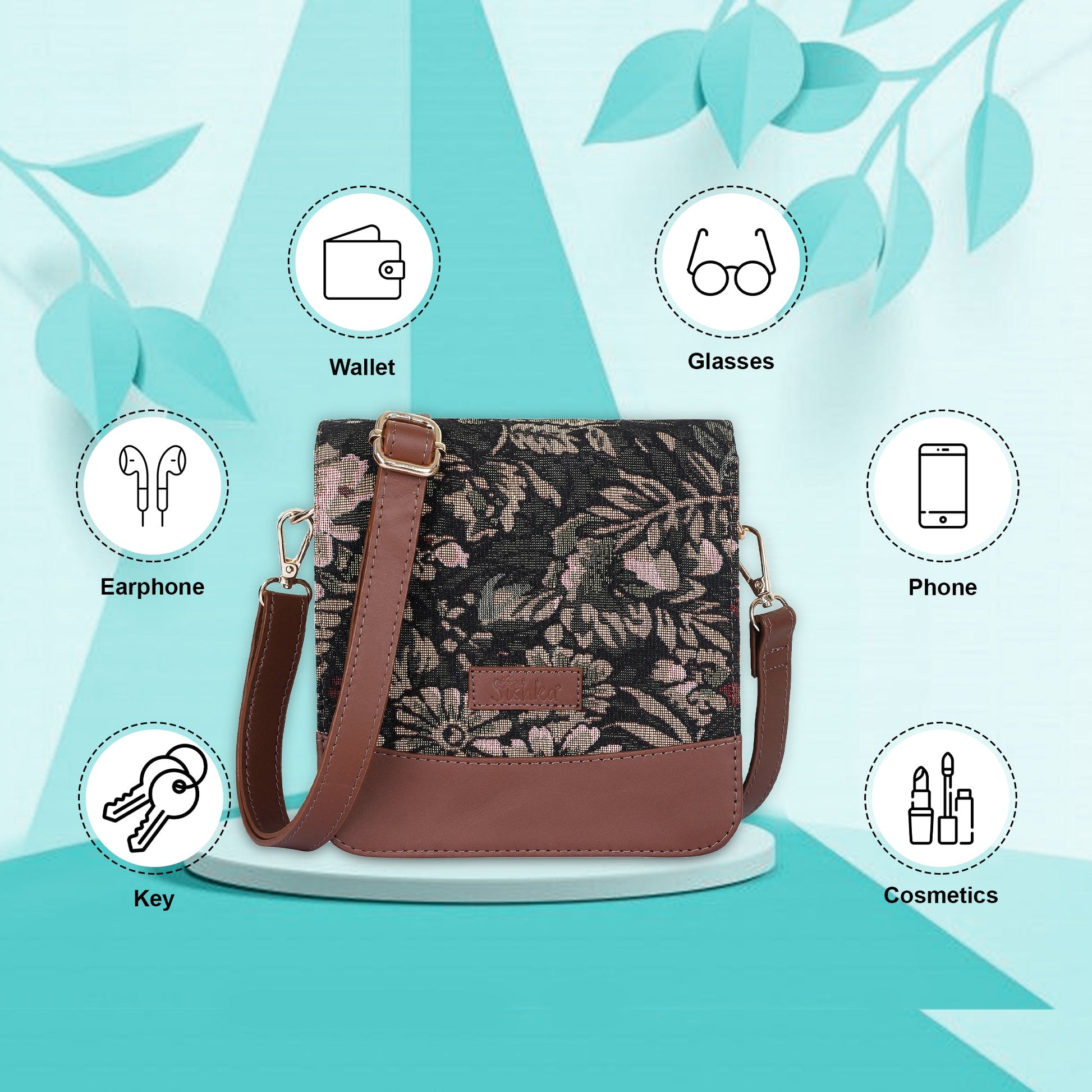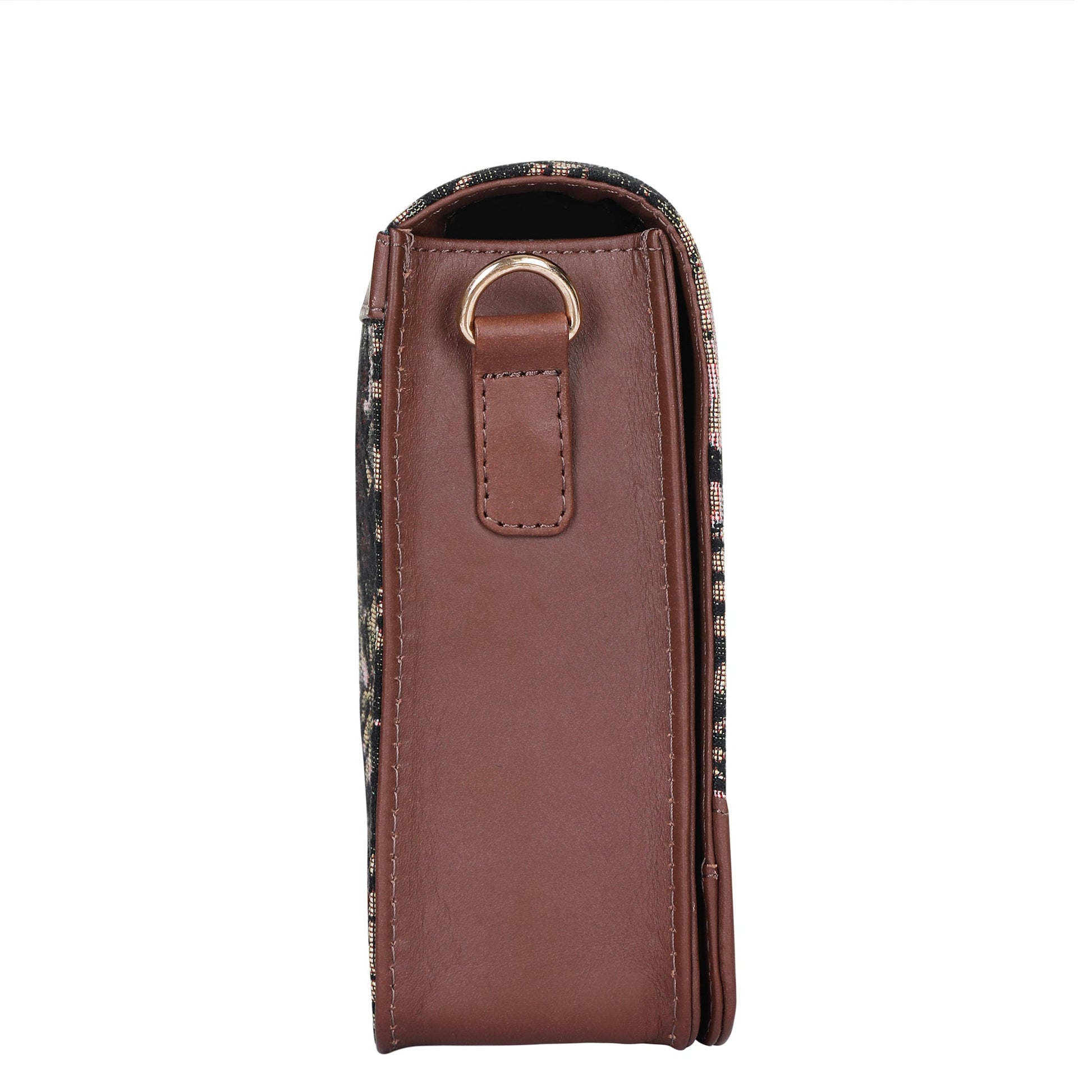 Vintage Tapestry Crossbody Bag – Women’s Sling Shoulder Purse with Leather Trim