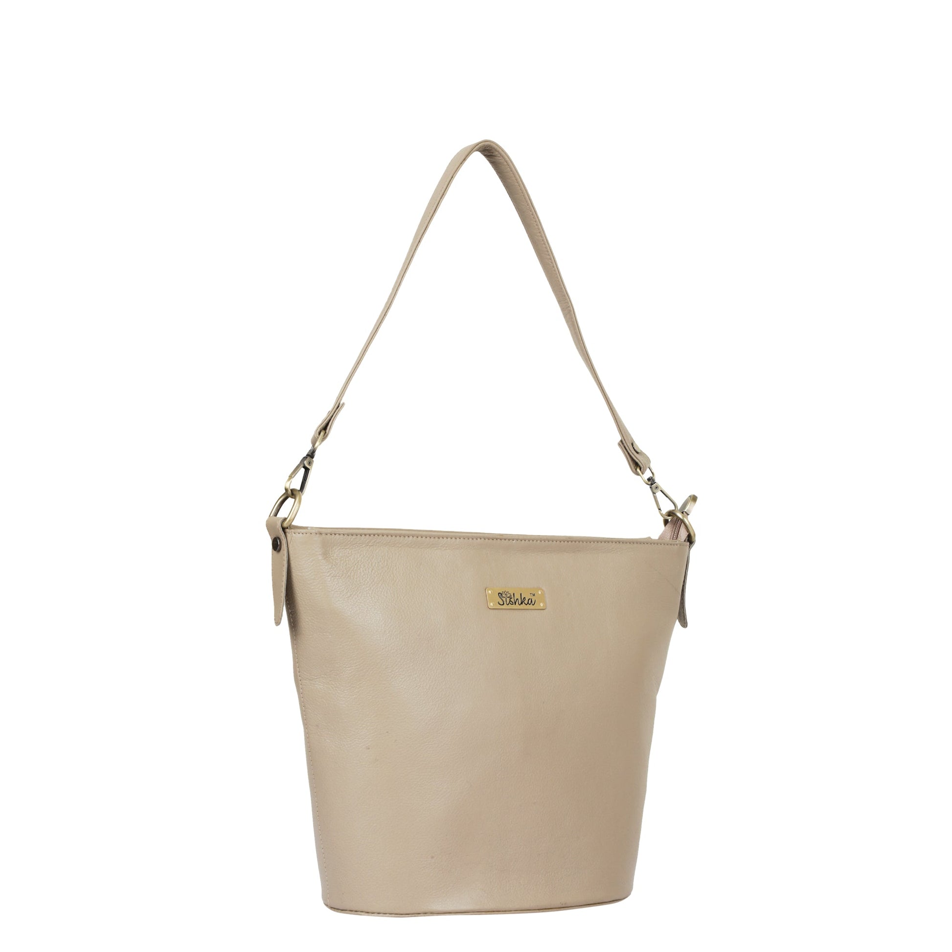 Taupe Genuine Leather Bucket Hobo Bag for Women – Elegant Shoulder Tote Purse