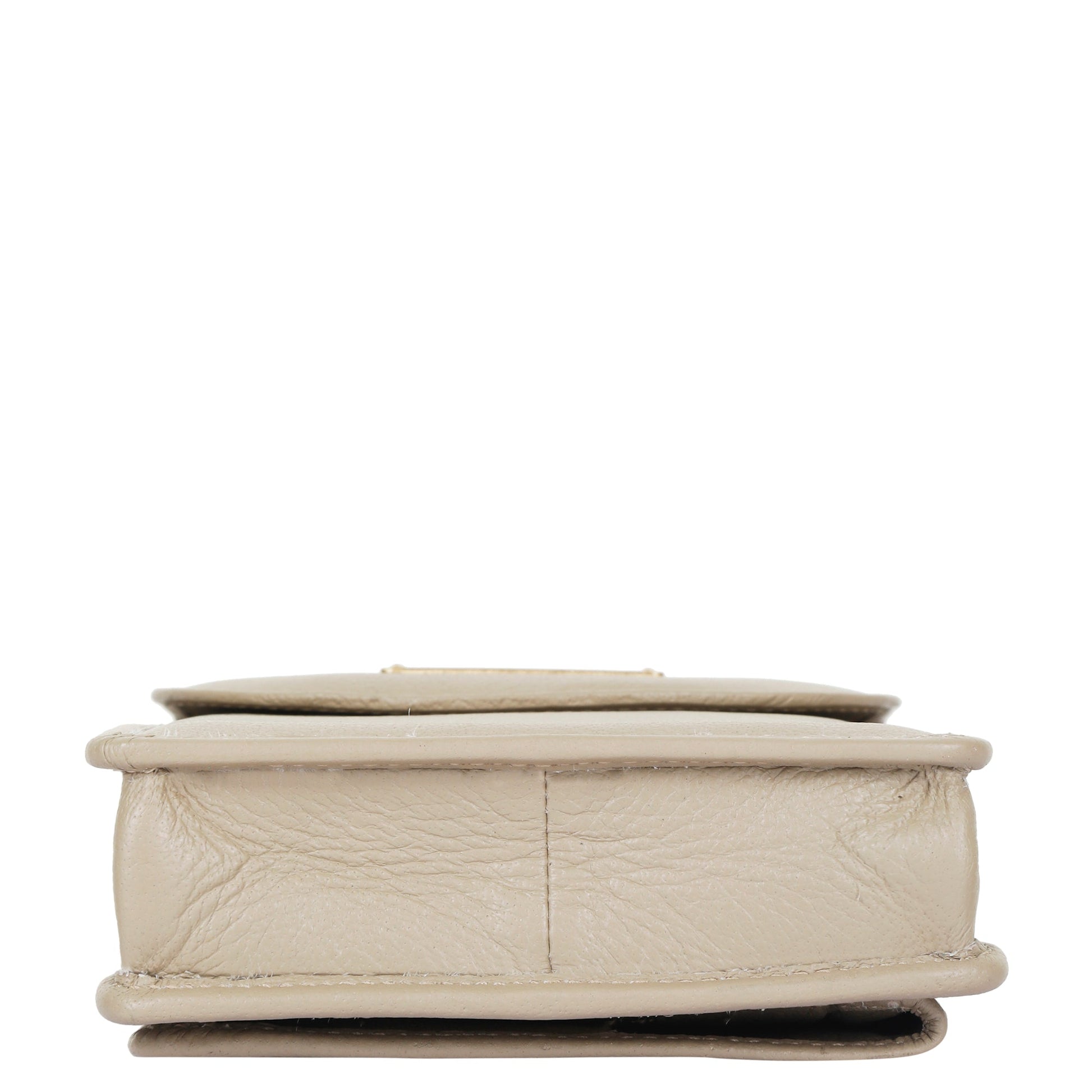 Taupe Genuine Leather Mobile Crossbody Bag – Women’s Phone Purse