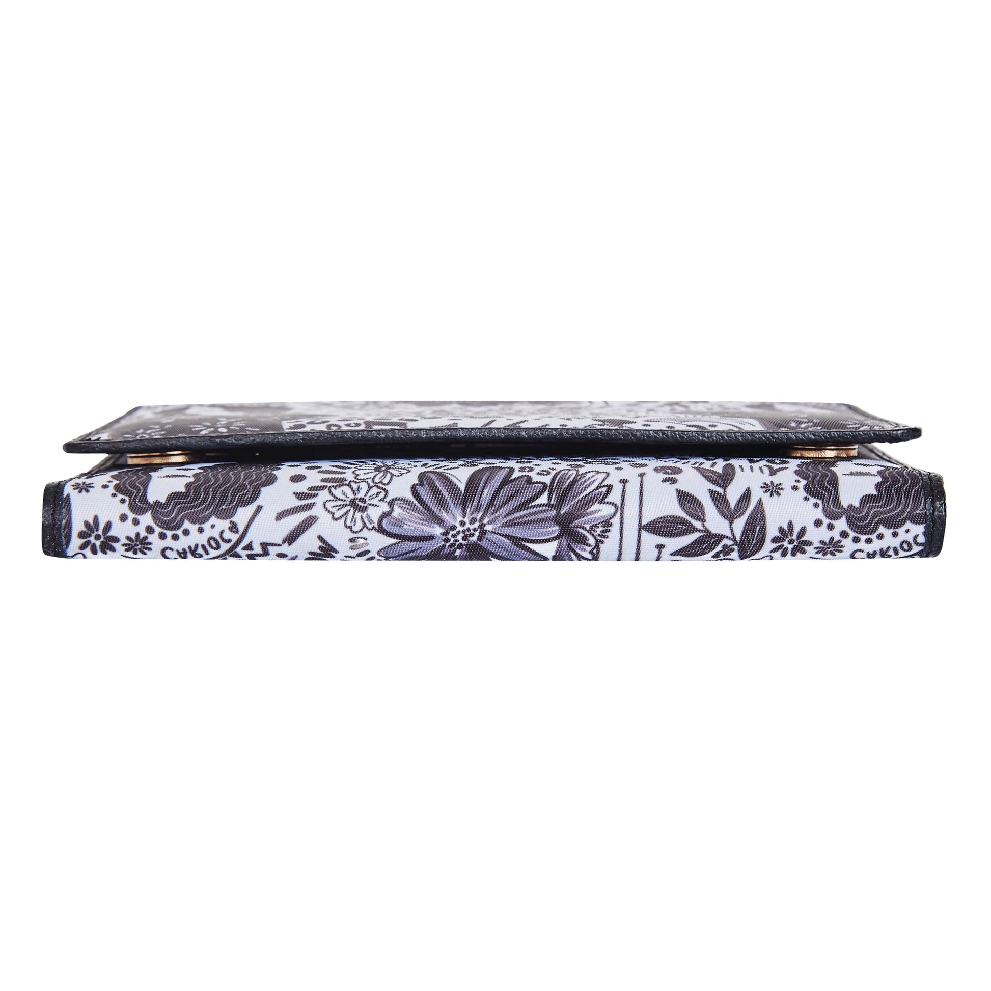 Trifold Wallet – Monochrome Print with Leather Detailing for women