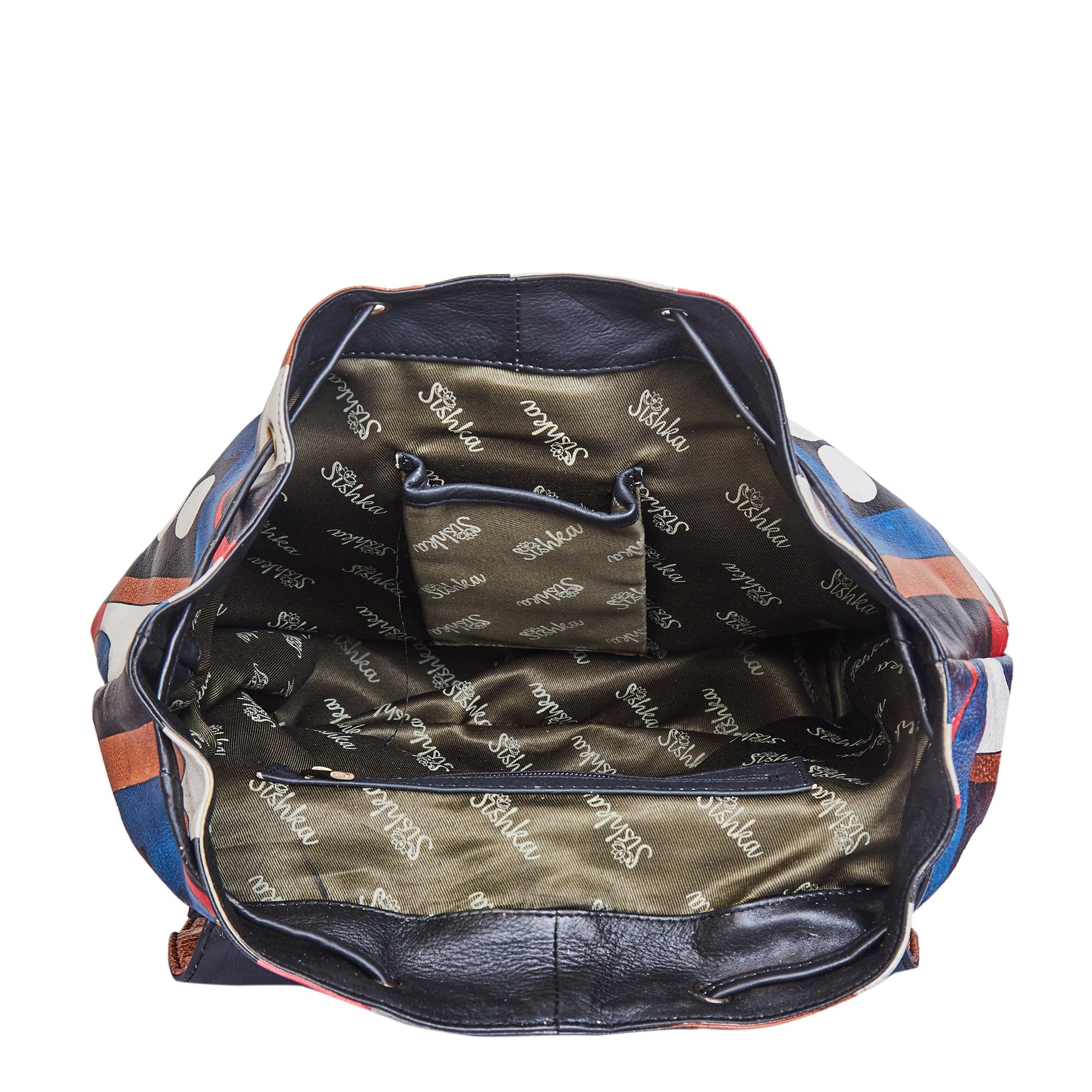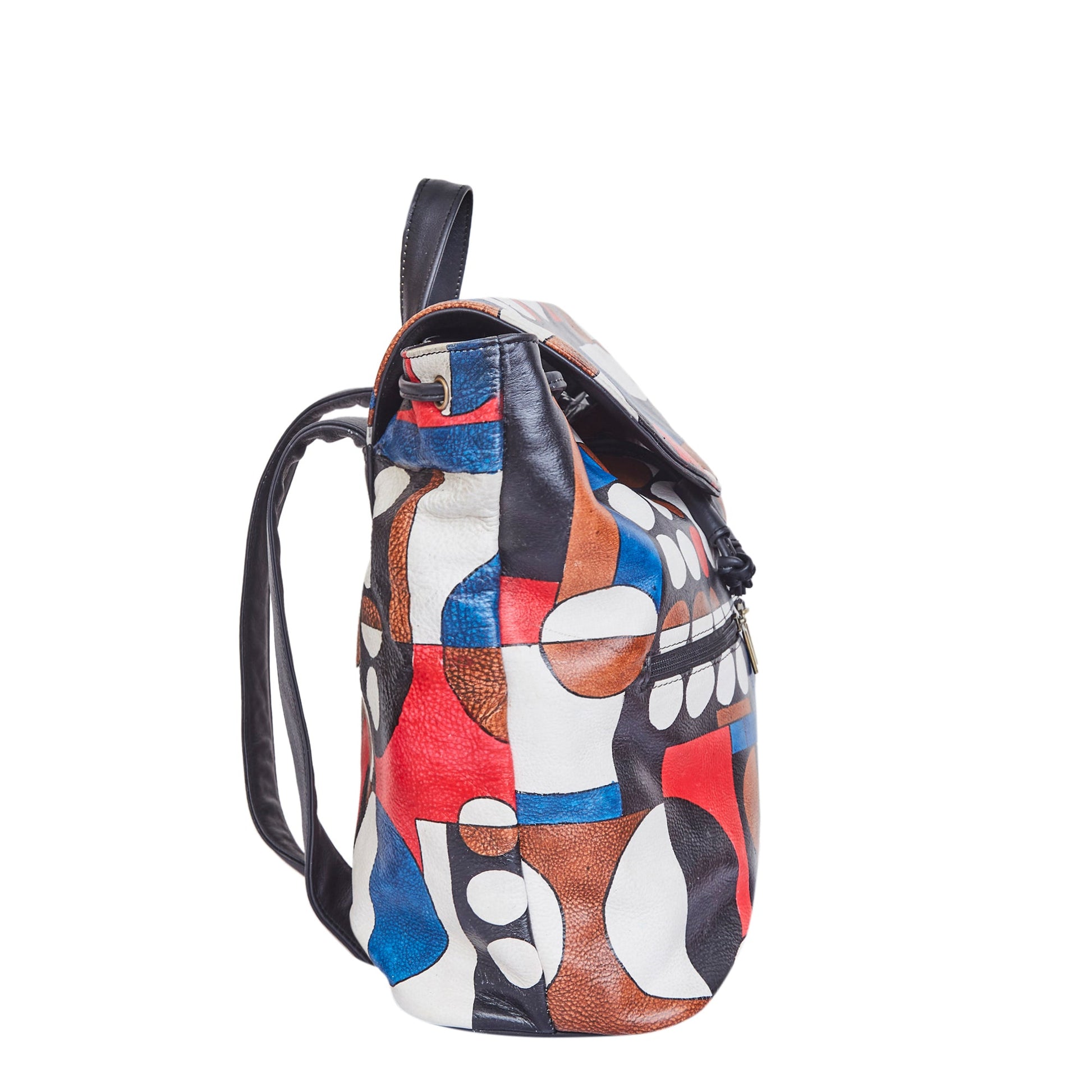 Hand-Painted Polka Dot Leather Backpack – Drawstring & Flap Closure