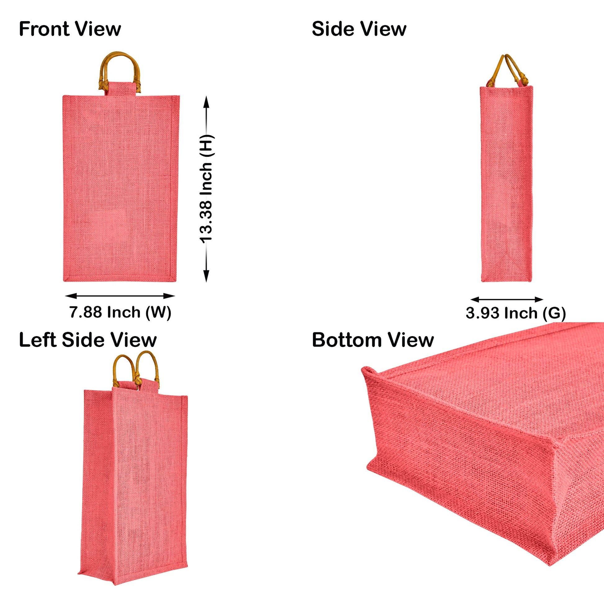 - Elegant & Durable Jute Wine Bags – Made from high-quality jute, these two-bottle wine totes add a sophisticated flair while keeping bottles secure—ideal for gifting at housewarmings and celebrations. Available in Deep Red, Pink, Green & Orange Shades.