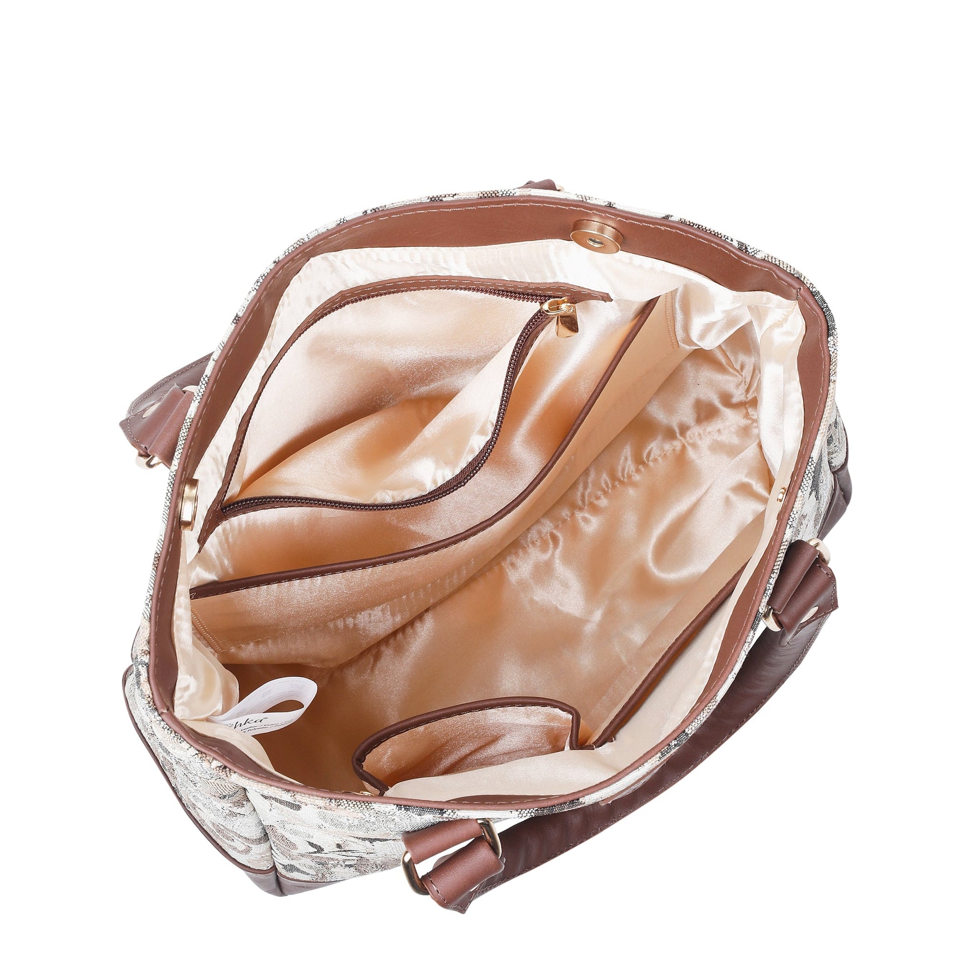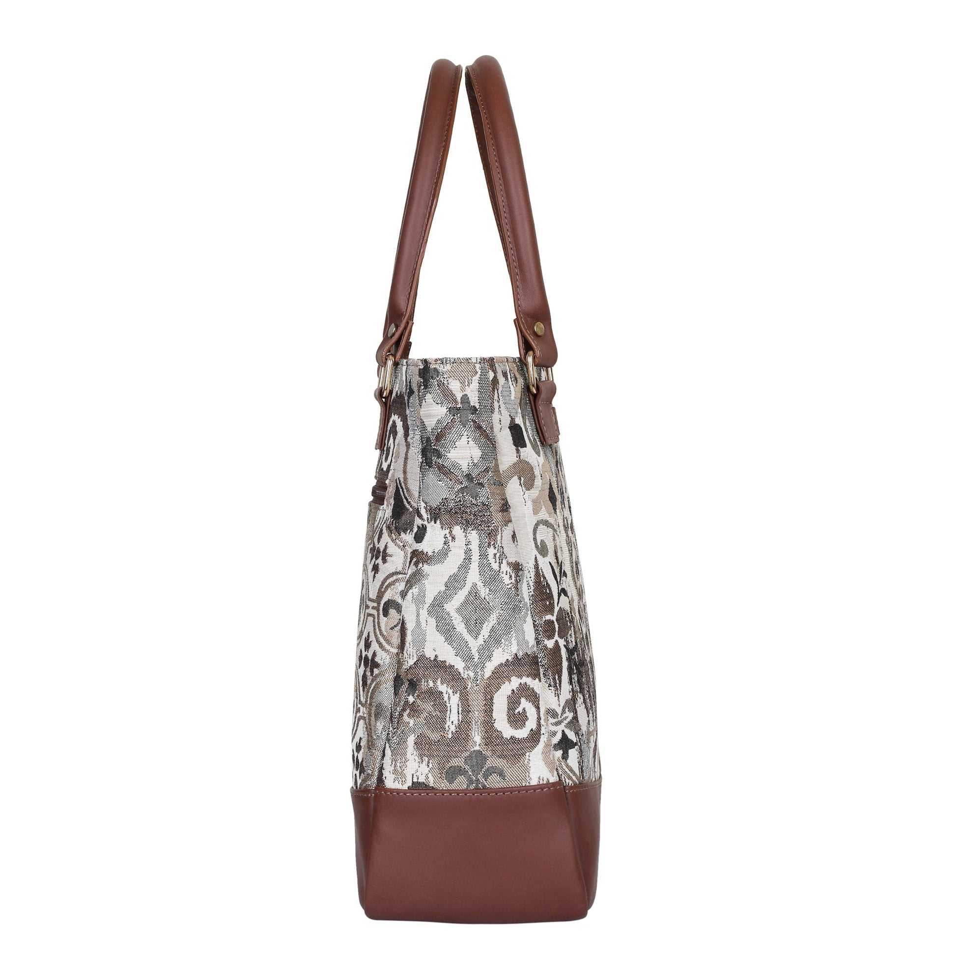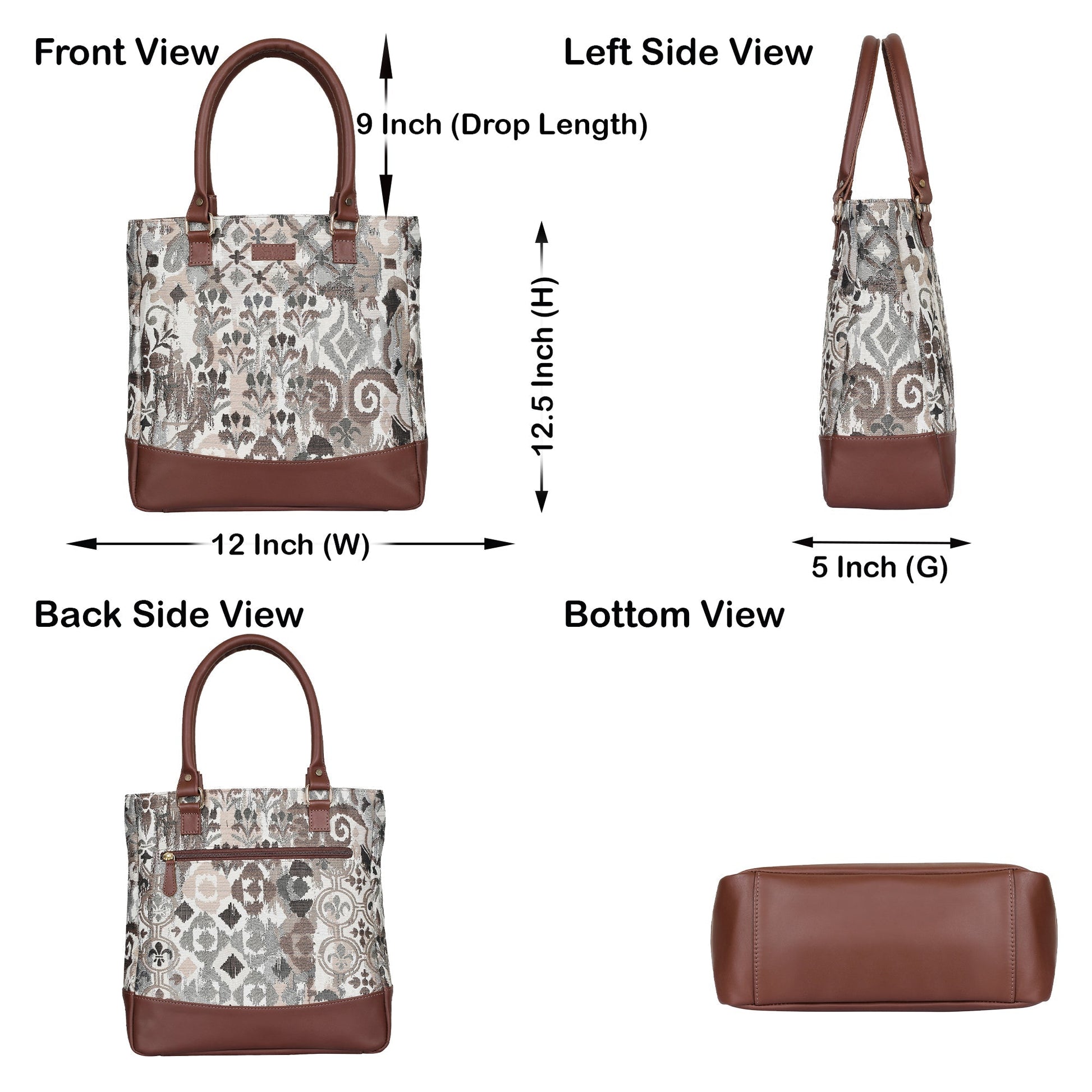 Premium Tapestry Build: Crafted from durable tapestry fabric with genuine leather accents, this women's handbag is available in five eye-catching Patterns—Vintage, Geometric, Botanical, Floral & Abstract.
