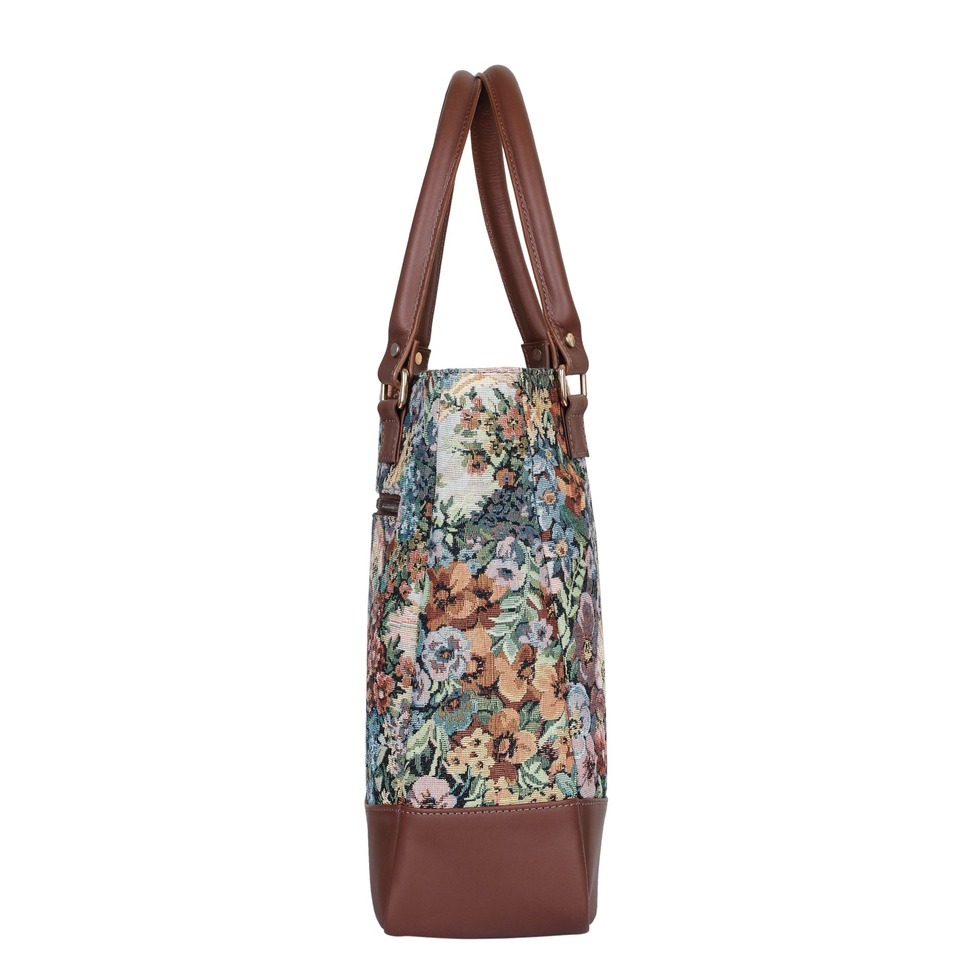 Women’s Botanical Tapestry Tote Bag – Shoulder & Top Handle Handbag with Leather Accents