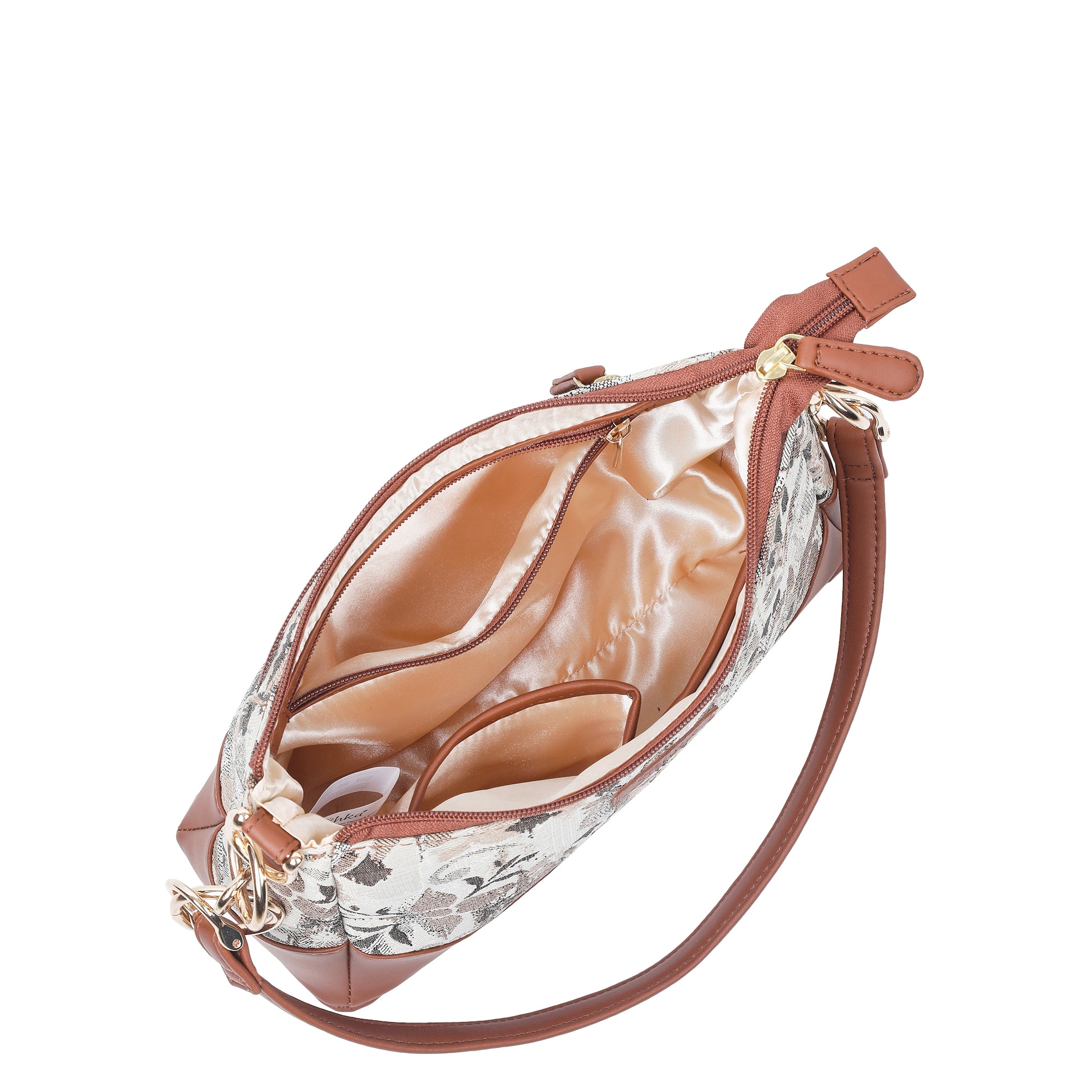 Elegant Tapestry & Leather Blend: Crafted from premium tapestry fabric with vegan leather trims and a stylish chain strap with a vegan leather grip. Available in five timeless designs—Vintage, Geometric, Botanical, Floral, and Abstract.