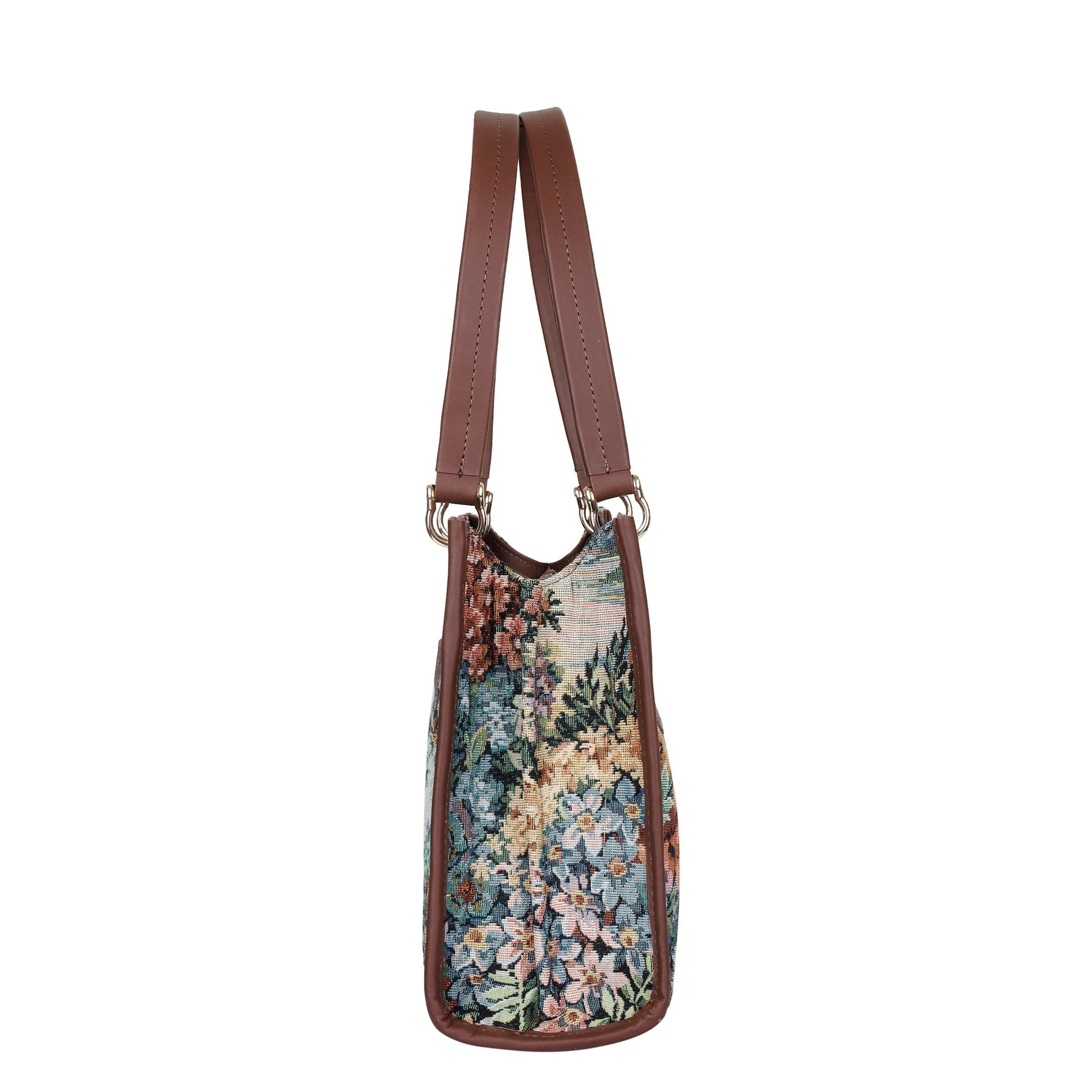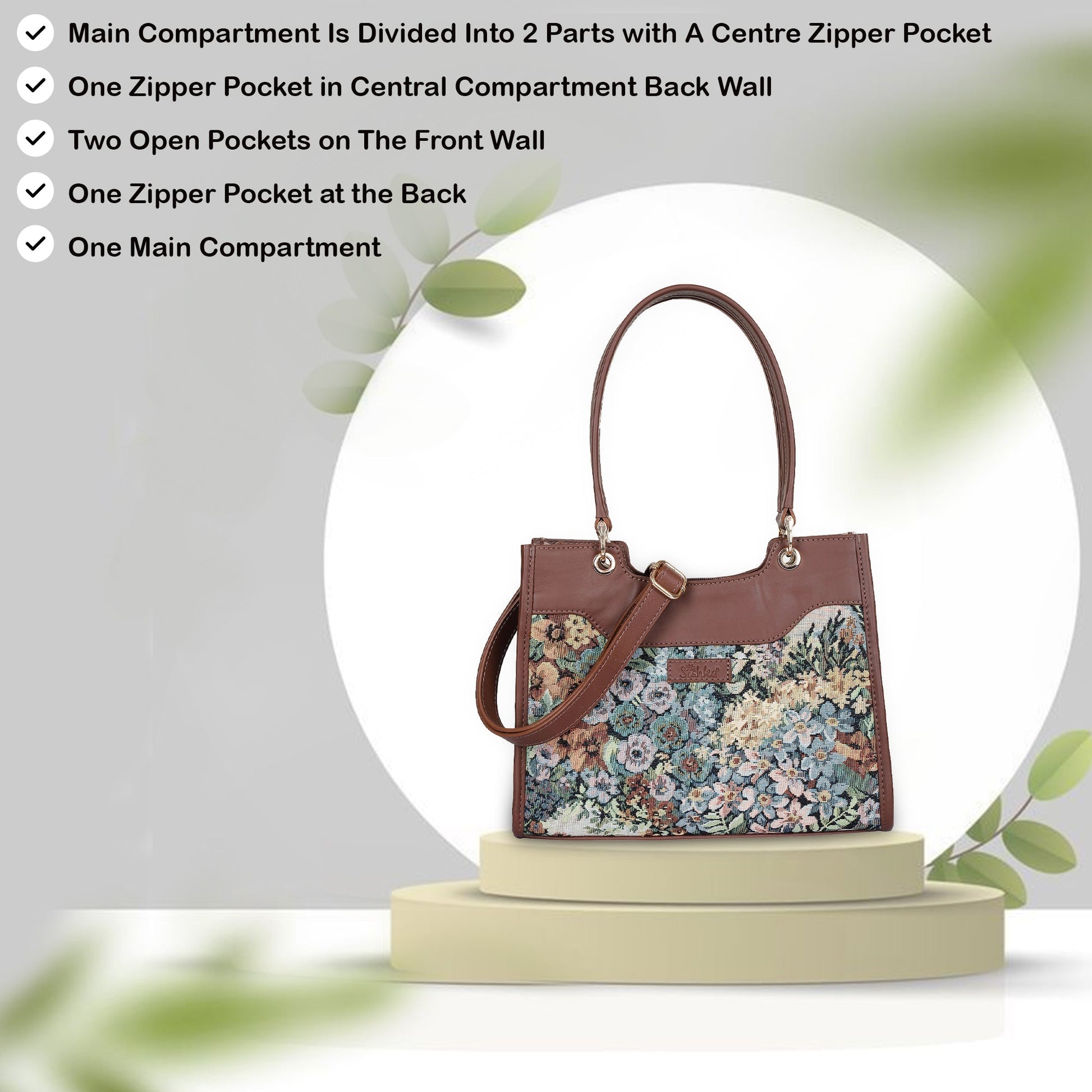 Women’s Botanical Tapestry Satchel Bag – Leather-Trimmed Handbag, Crossbody & Shoulder Purse