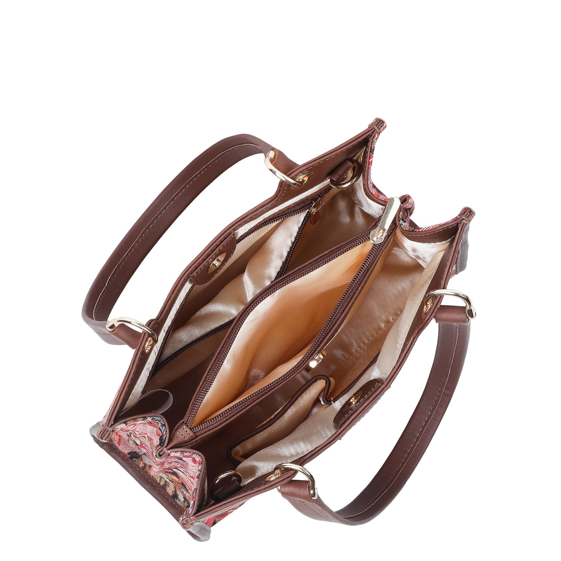 Women’s Floral Tapestry Satchel & Crossbody Bag – Leather-Trimmed Shoulder Purse with Top Handle