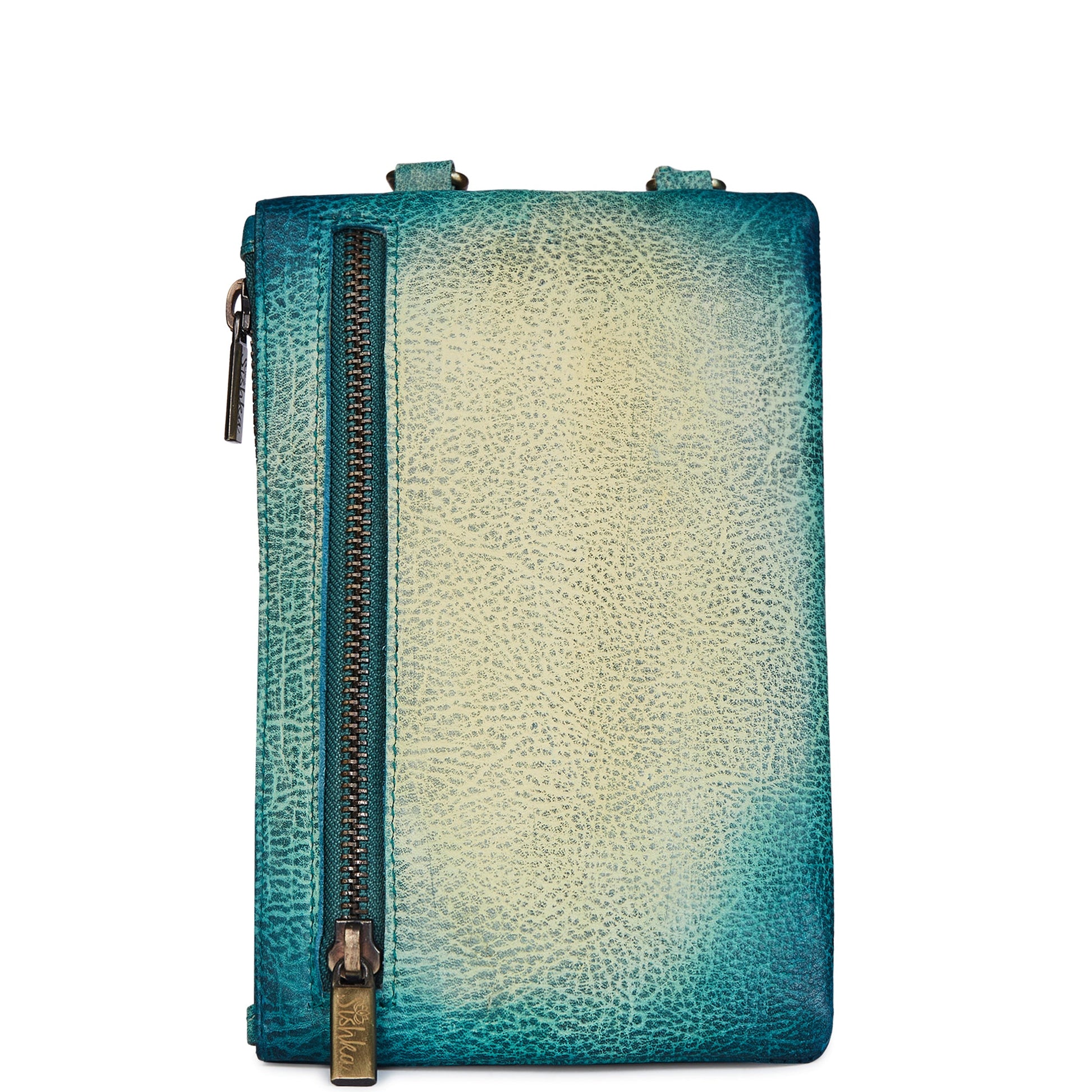 Women's Hand-Painted Floral Phone Wallet with Blue Strap