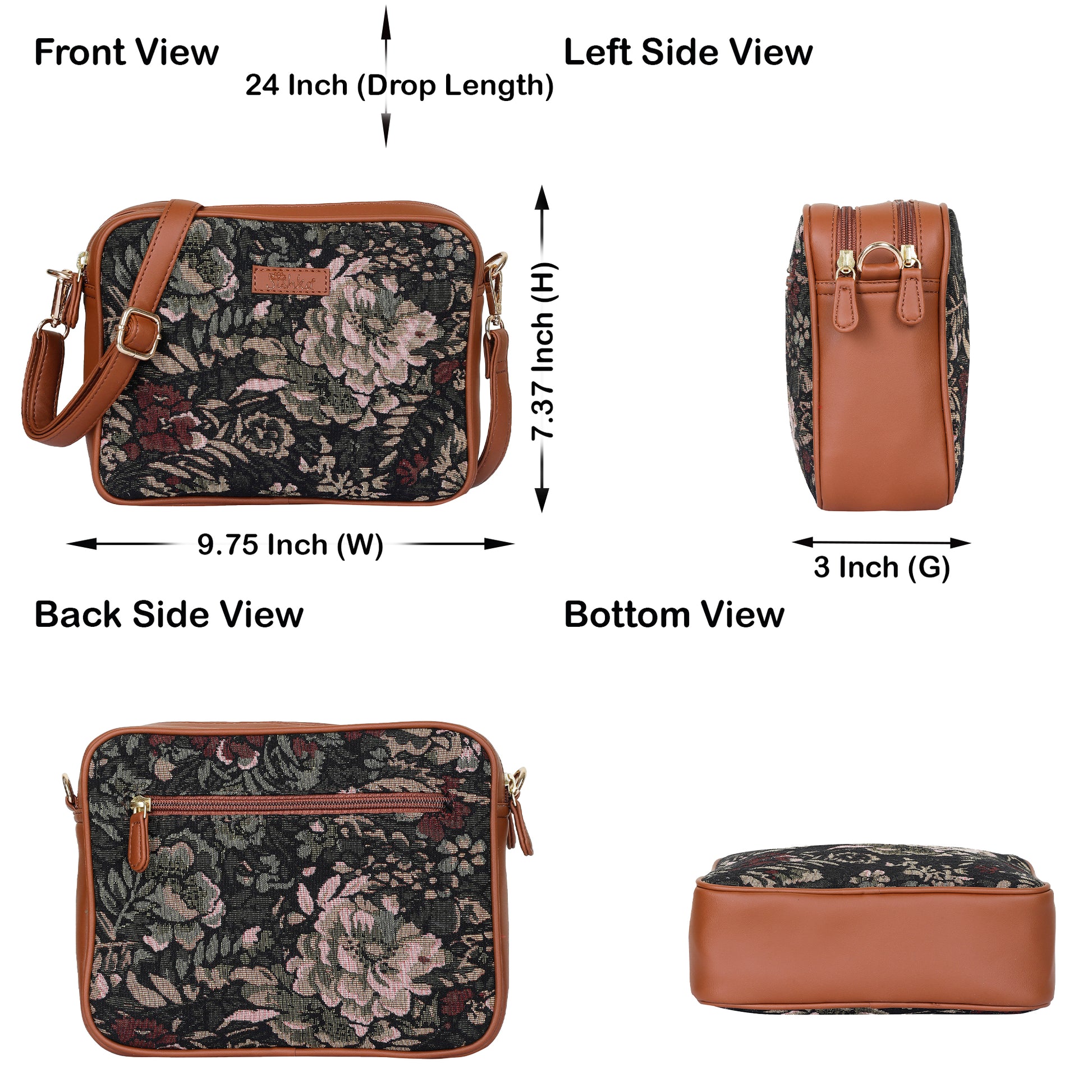 Women’s Vintage Tapestry Messenger Bag – Vegan Leather Crossbody & Shoulder Purse for Travel & Daily Use